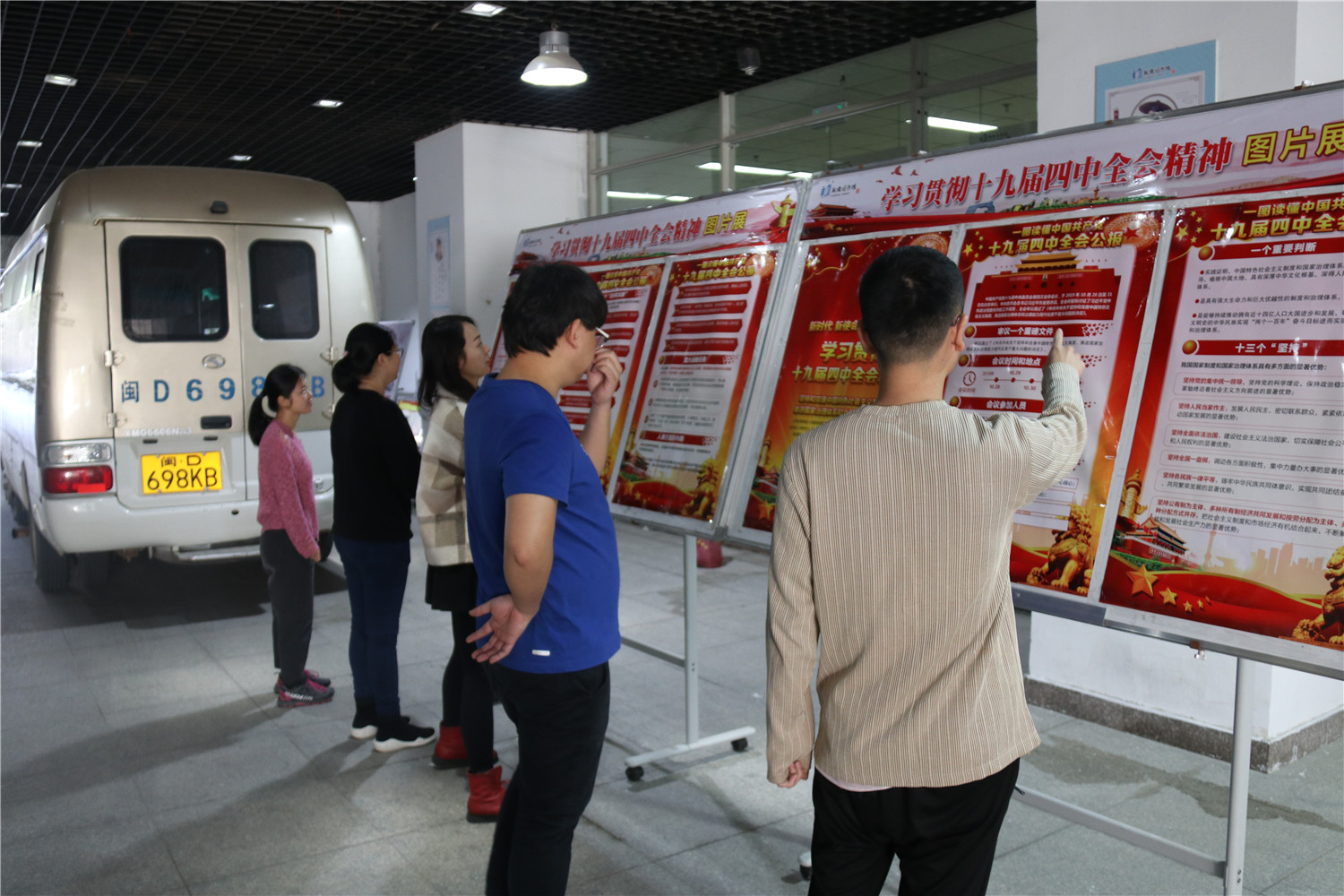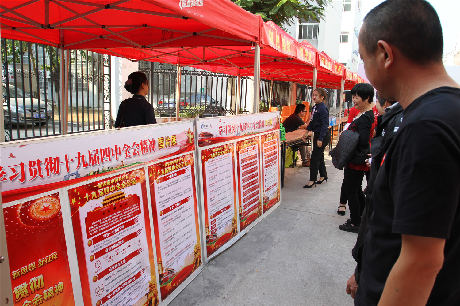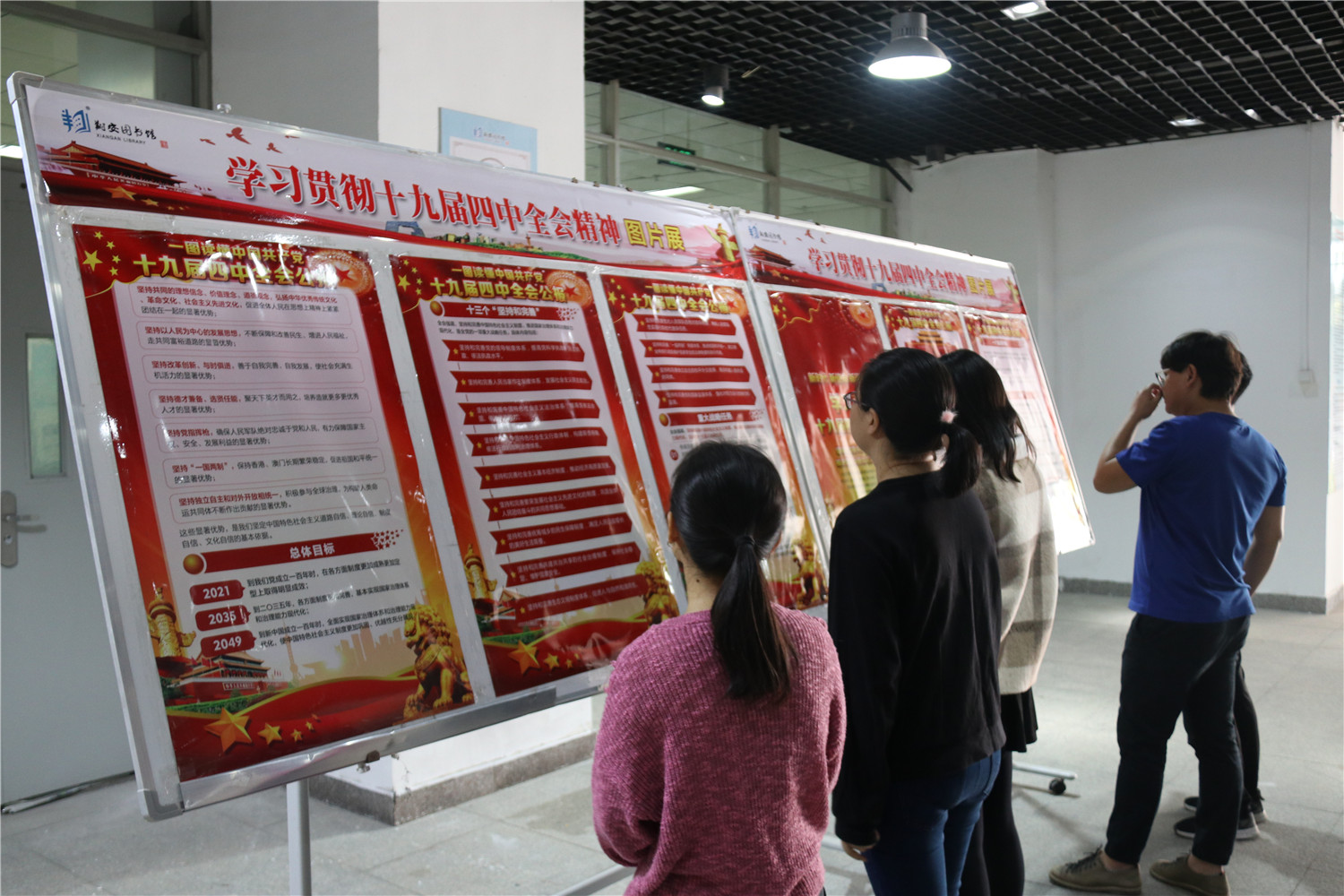 11月15日,翔安区图书馆在消防通道举办了“学习贯彻十九届四中全会精神”图片展,组织志愿者和馆员通过图片展学习贯彻十九届四中全会精神。