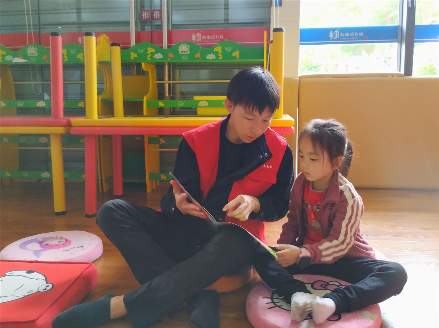 此次为小读者带来服务的是来自厦门海洋职业技术学院的志愿者,他们通过精心组织的绘本讲述、游戏互动、律动带领、亲子互动等小环节,跟现场小读者热情交流,分享快乐。