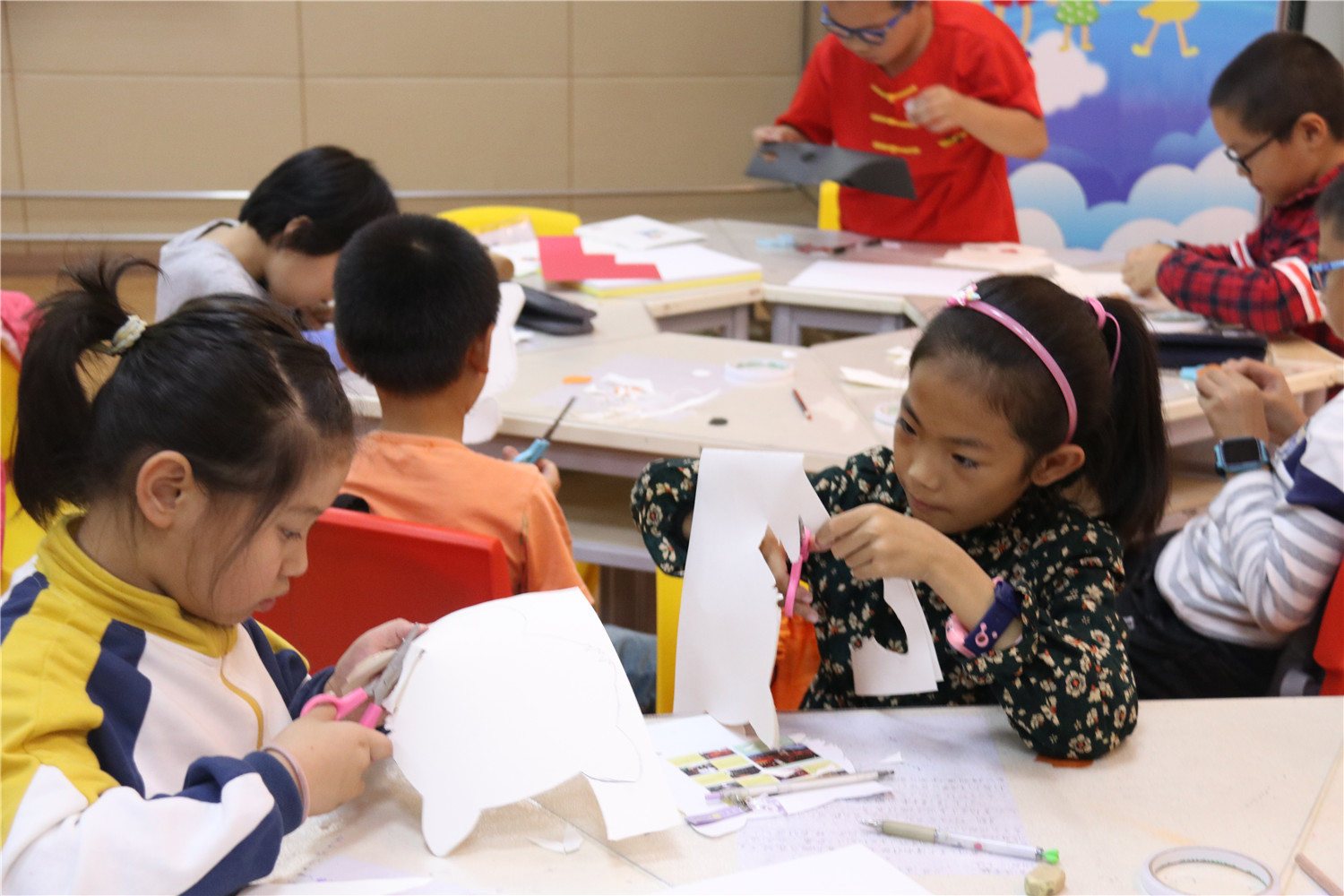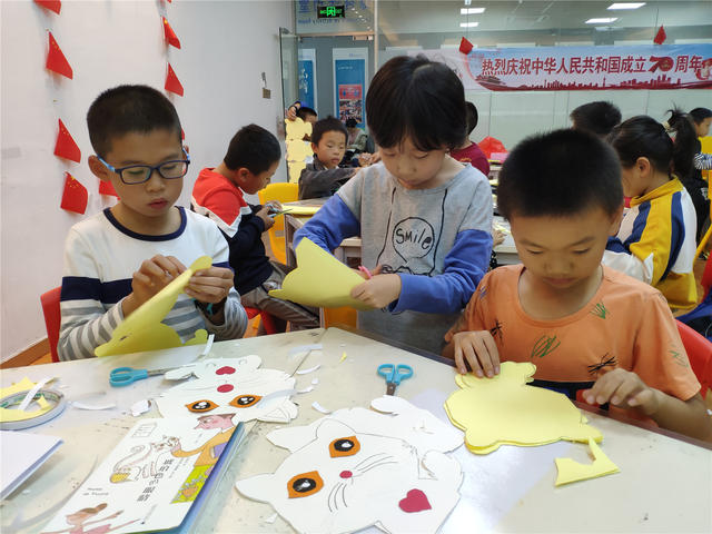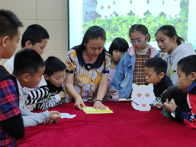 本期“智绘书”活动,香橼老师首先共读了儿童文学《琥珀色的眼睛》一书,和小读者们一起评析了小学期中考试作文,教他们学会如何把一件看拟平淡的事写得生动而有趣,并进行同步作文《生活万花筒》的练笔,老师还对他们的作文做了现场批改和点评;手工书制作环节,老师指导他们制作可爱的立体“小白猫”智绘书。