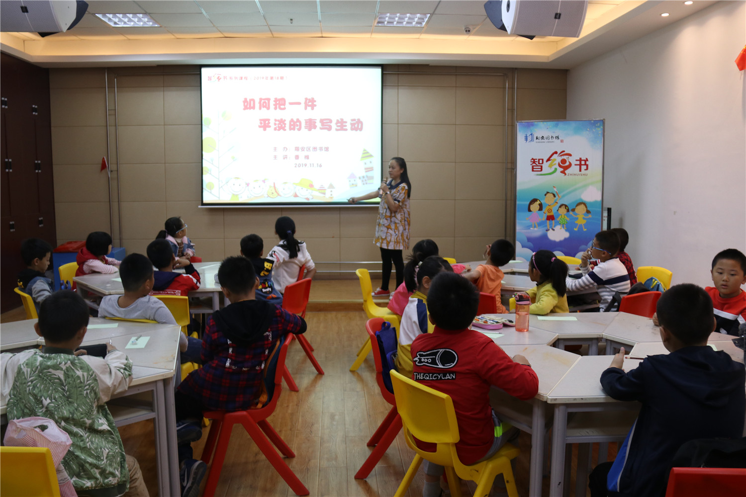 11月16日,翔安区图书馆邀请了福建省作家协会会员、编剧、儿童文学作家香橼老师为小读者们举办智绘书——“如何把一件平淡的事写生动”活动。