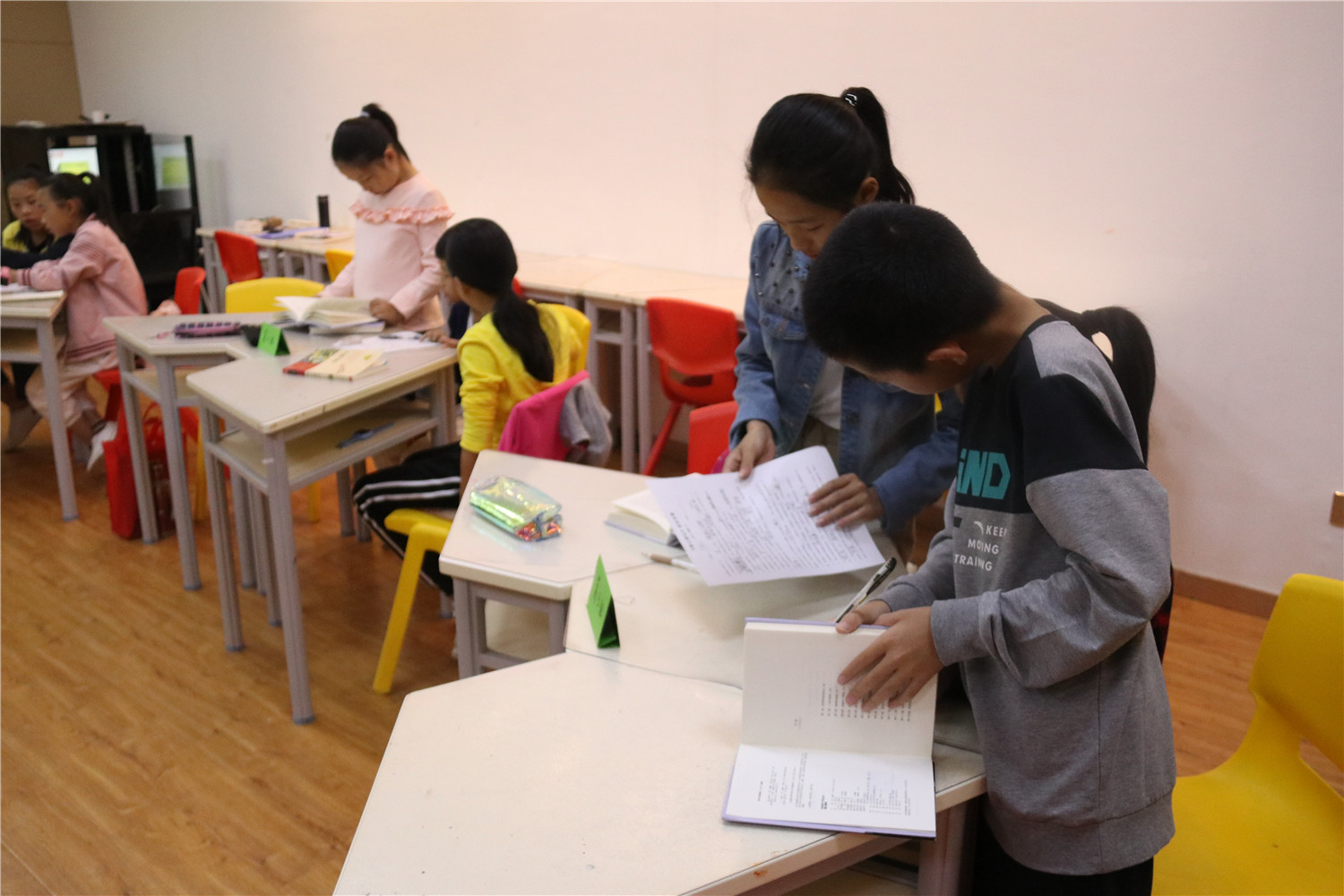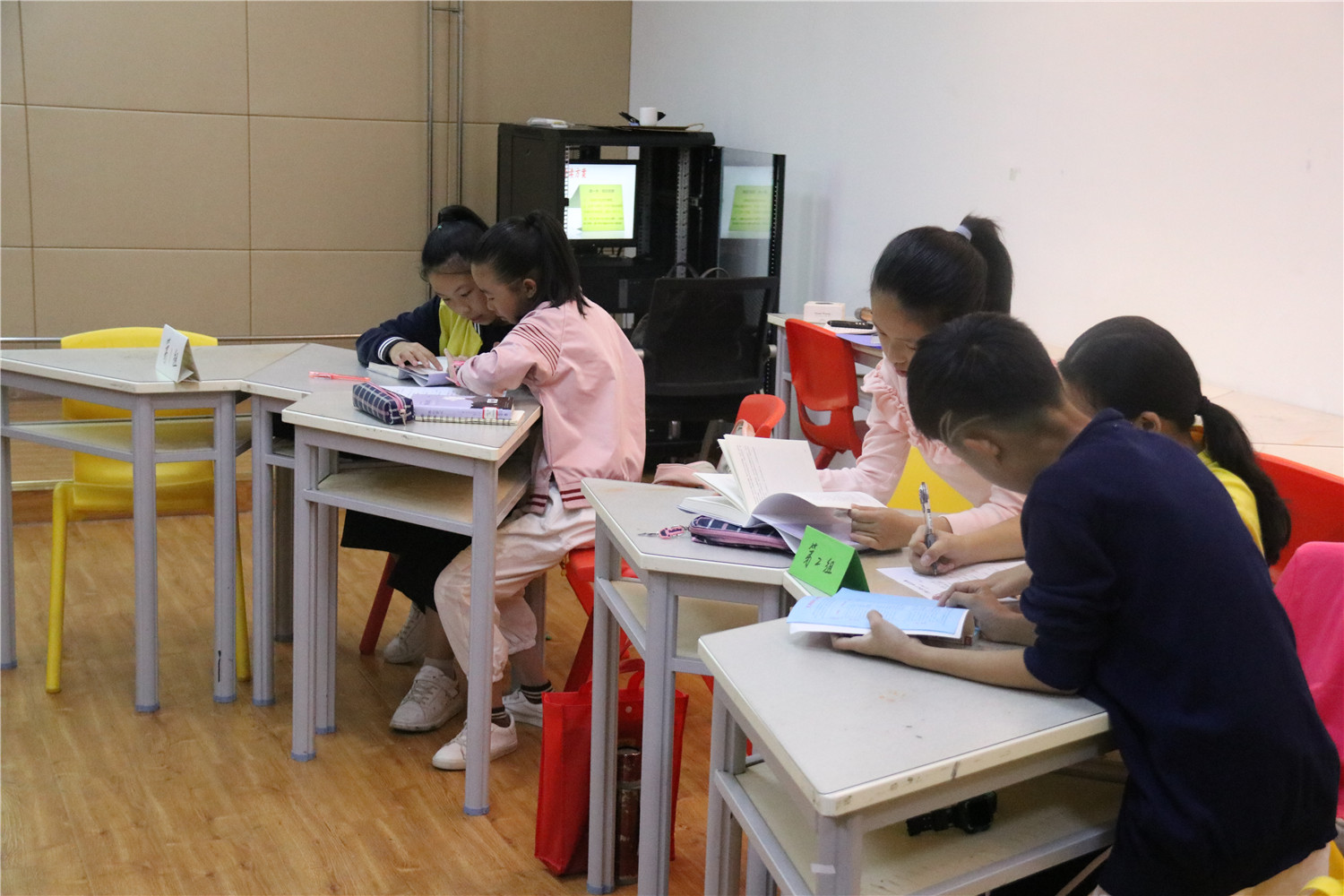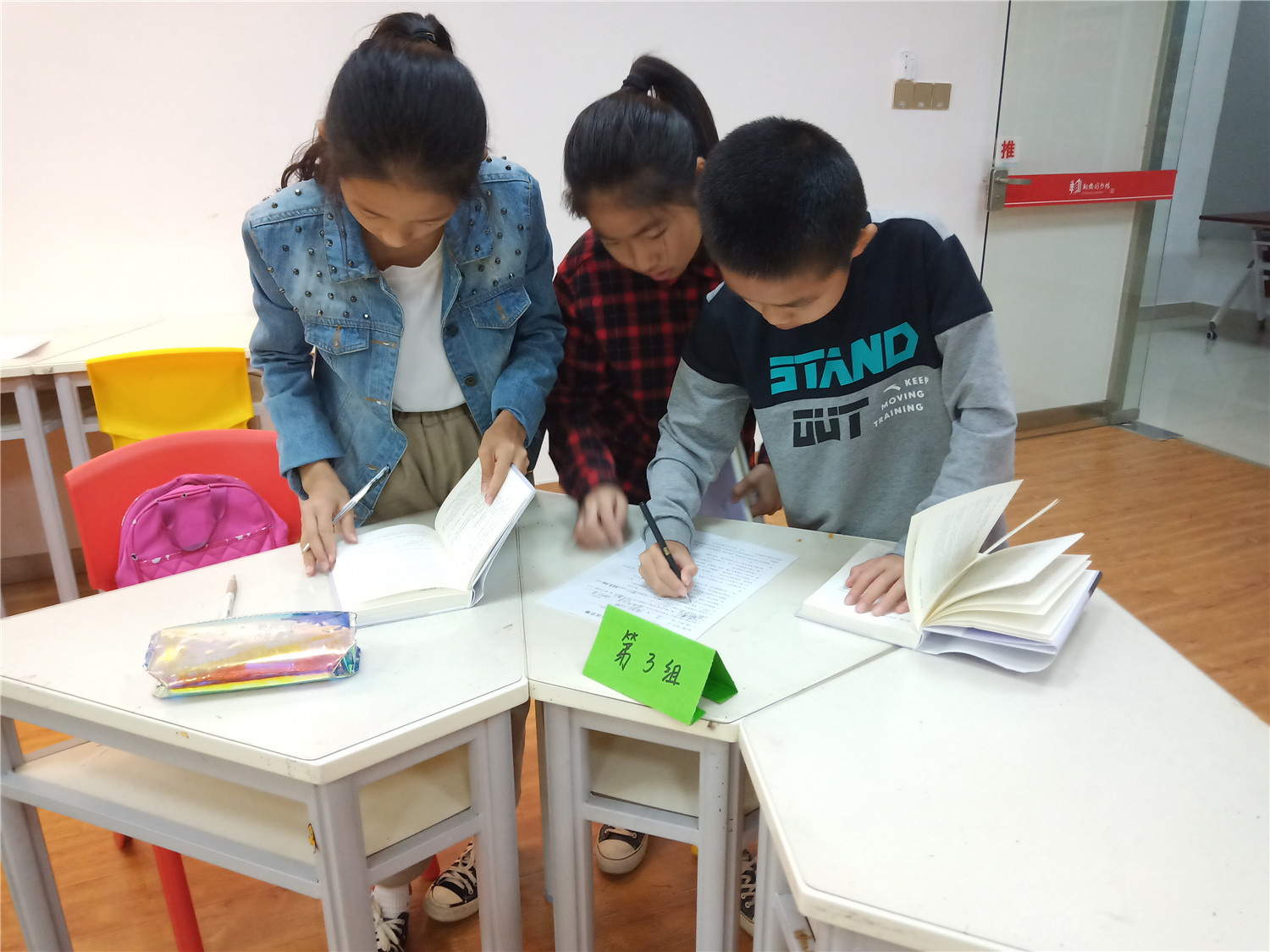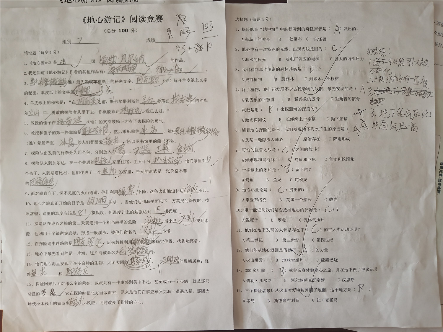 本次读书会,我们依然采用分组学习形式。领读老师首先详细介绍了儒勒·凡尔纳这位伟大的科幻小说之父,为小读者们补充了书中提到的“地心”、“冰岛”、“火山”等地理知识。接着,老师分发事先准备的“阅读测试卷”,让大家完成,旨在考察小读者们对本书阅读的细致程度。在此过程中,小组成员互相交流,不断翻书回顾故事内容,相互评阅比分,调动了主动学习的积极性。