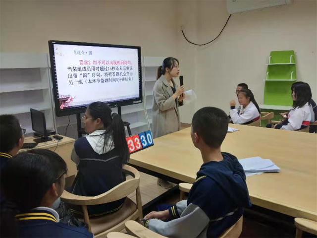 活动伊始,在主持人对中华诗词数据学习平台介绍完后,由学校李永记主任致开幕辞,林主任引导同学们学好古诗词,“腹有诗书气自华”,用诗词涵养美好心灵,让学习与生活充满诗情画意,最后预祝此次比赛取得圆满成功。