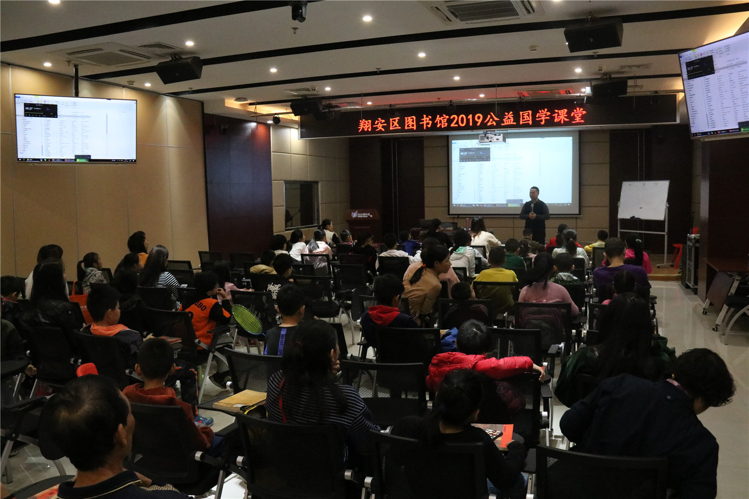 11月30日上午,翔安区图书馆举办了2019年公益国学课堂秋季第9期活动。本次活动由翔安区义雅书院院长力禾老师主持,他作了“双法字理(器物类)”的德能讲座分享,介绍了“筷子、碗、姜、酱”等几种器物字理的由来和更替,并指导在座亲子家庭的读者诵读《论语》、《千家诗》等国学经典。课堂上有分享、有讨论、有答惑,由浅入深,亲子共学,既诵读经典、学习圣贤的智慧,又在德能分享活动中帮助读者树立正确的知见。