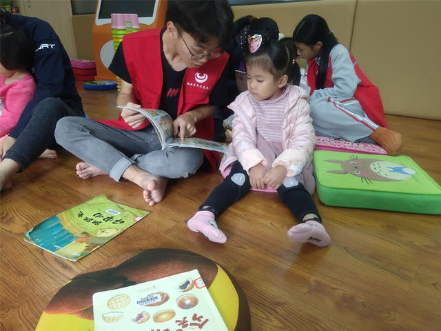 此次为小读者带来服务的是来自厦门海洋职业技术学院的志愿者,他们通过精心组织的绘本讲述、游戏互动、律动带领、亲子互动等小环节,跟现场小读者热情交流,分享快乐。