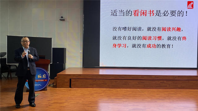 颜务林首先从对比分析了中国和日本孩子的阅读现状,认为阅读是教育创新的支点,阐述了阅读的重要性。接着,颜教授从阅读习惯的养成、图书馆的重要性、如何用好图书馆等方面,倡导将职业阅读与嗜好阅读并举,嗜好阅读更有利于阅读兴趣的养成,鼓励在座读者常到图书馆,用好图书馆的各类资源,广泛涉猎,博览群书,丰富知识,深厚学养。