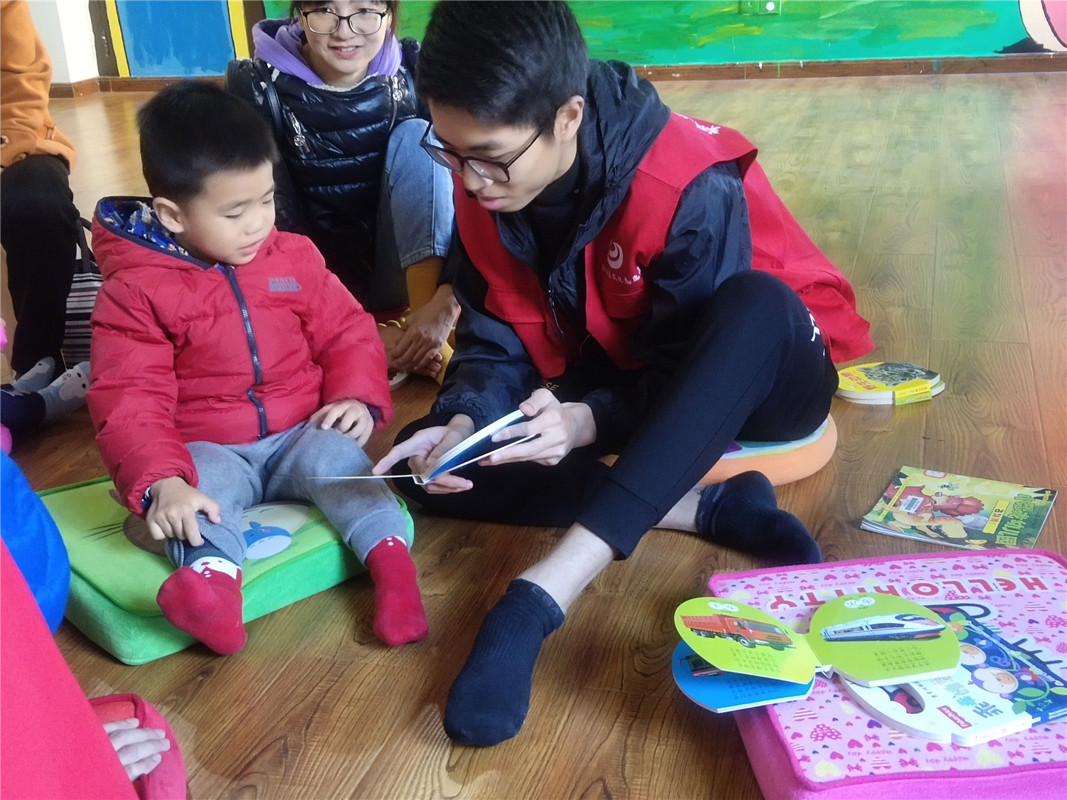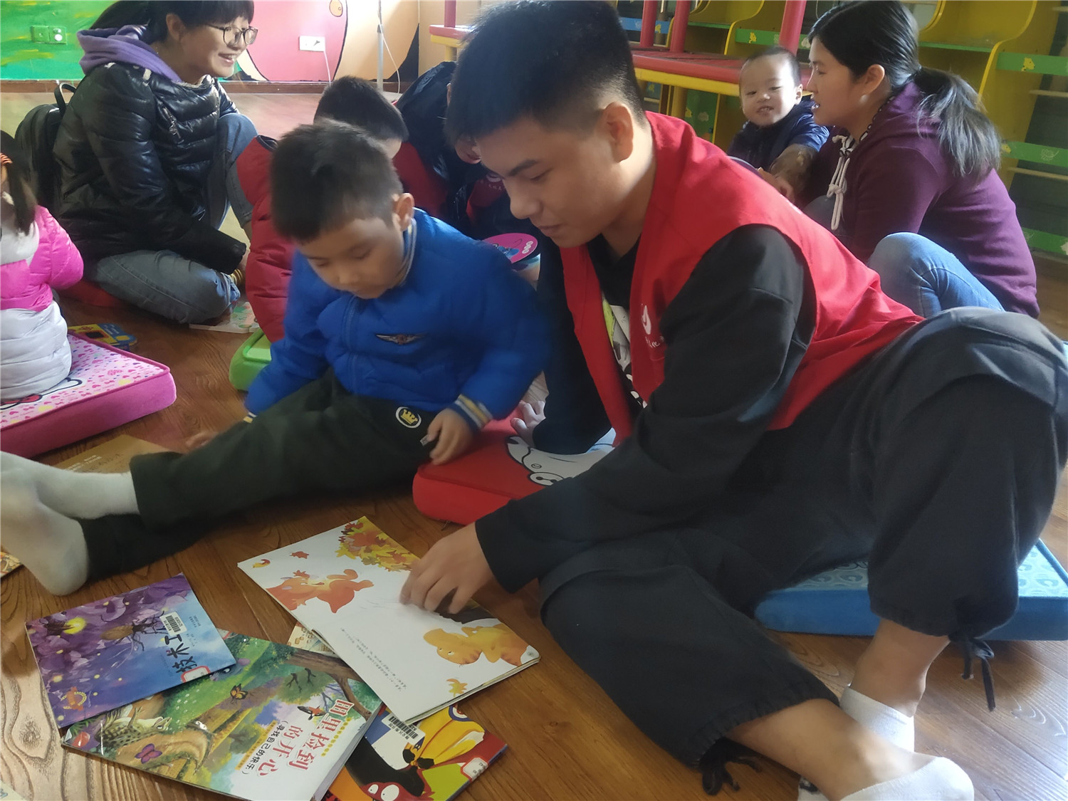 此次为小读者带来服务的是来自厦门海洋职业技术学院的志愿者,他们通过精心组织的绘本讲述、游戏互动、律动带领、亲子互动等小环节,跟现场小读者热情交流,分享快乐。