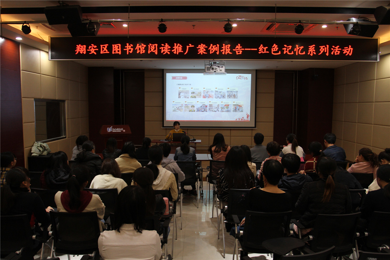 11月29日,举办《阅读推广案例报告——红色记忆系列活动》,由流通服务部林琳主讲,展示我馆参加“第二届公共图书馆创新创意征集推广活动”荣获二等奖的案例,总结近年来“红色记忆系列活动”的内容和成效。
