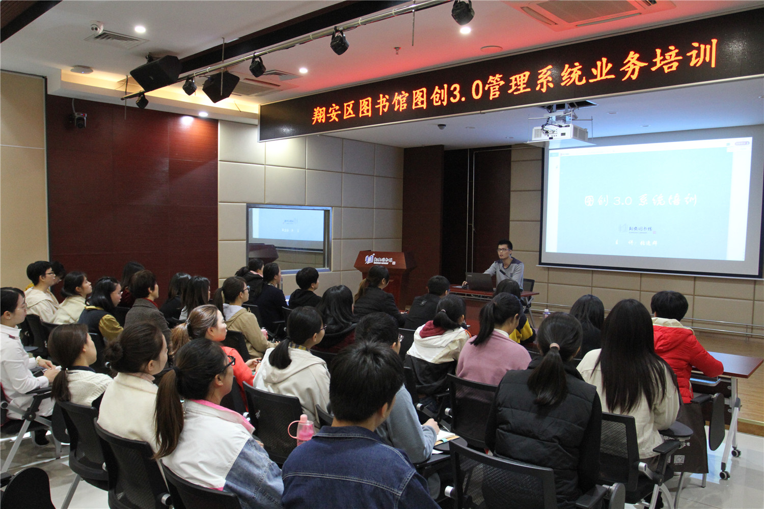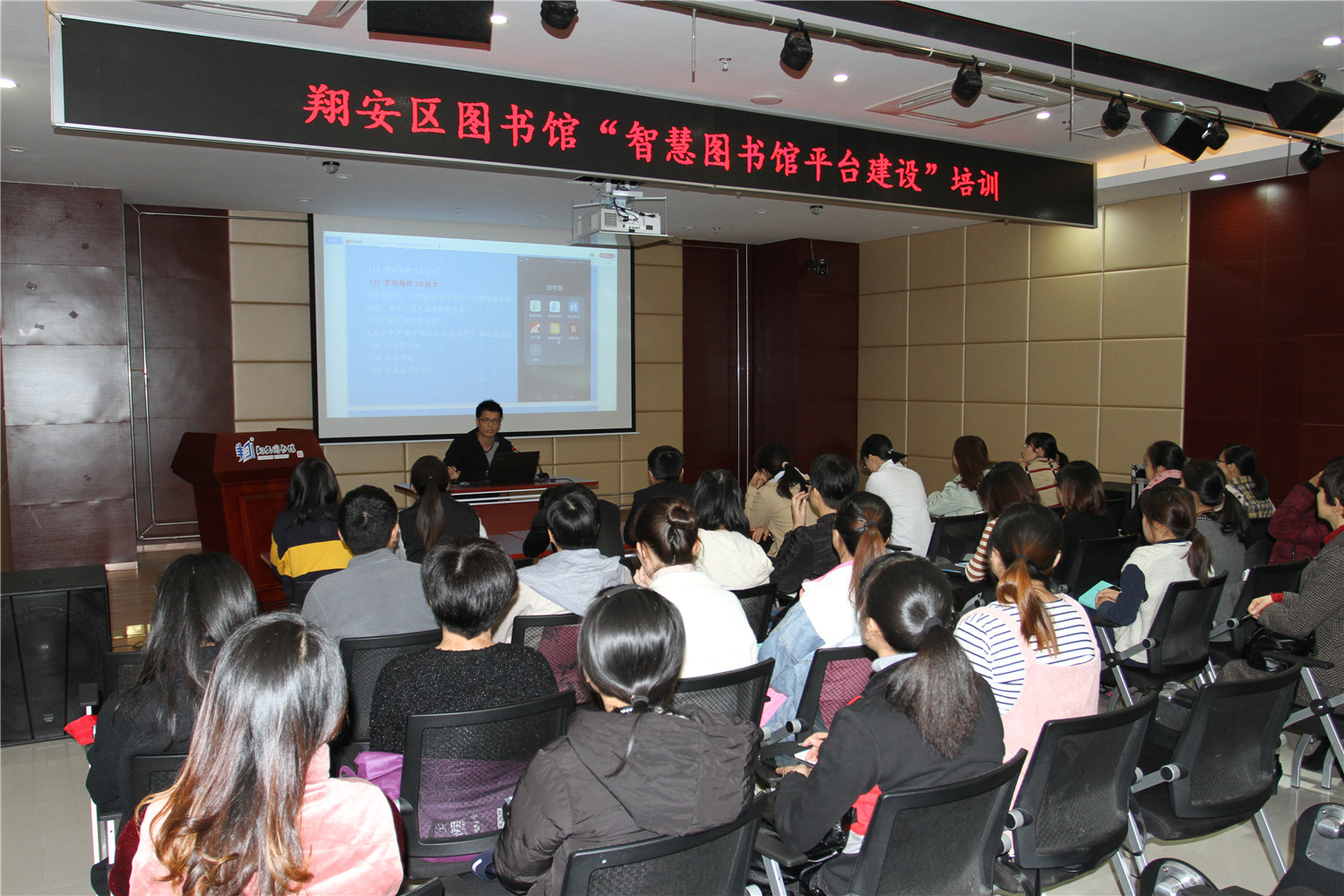12月9日,举办《智慧图书馆平台建设培训》,由流通服务部张逸群主讲,让全体工作人员系统的了解本馆“智慧图书馆”的功能和应用,以便更好地引导广大读者利用馆内海量的数字资源。