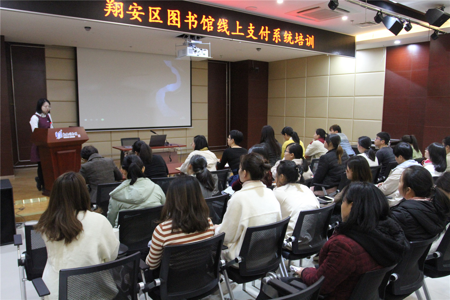 12月6日,举办《线上支付系统培训》,由综合保障部主任陈梅玲主讲,指导工作人员熟悉银联卡、微信、支付宝的支付方式,为读者带来更准确快捷的“无现金”支付体验。