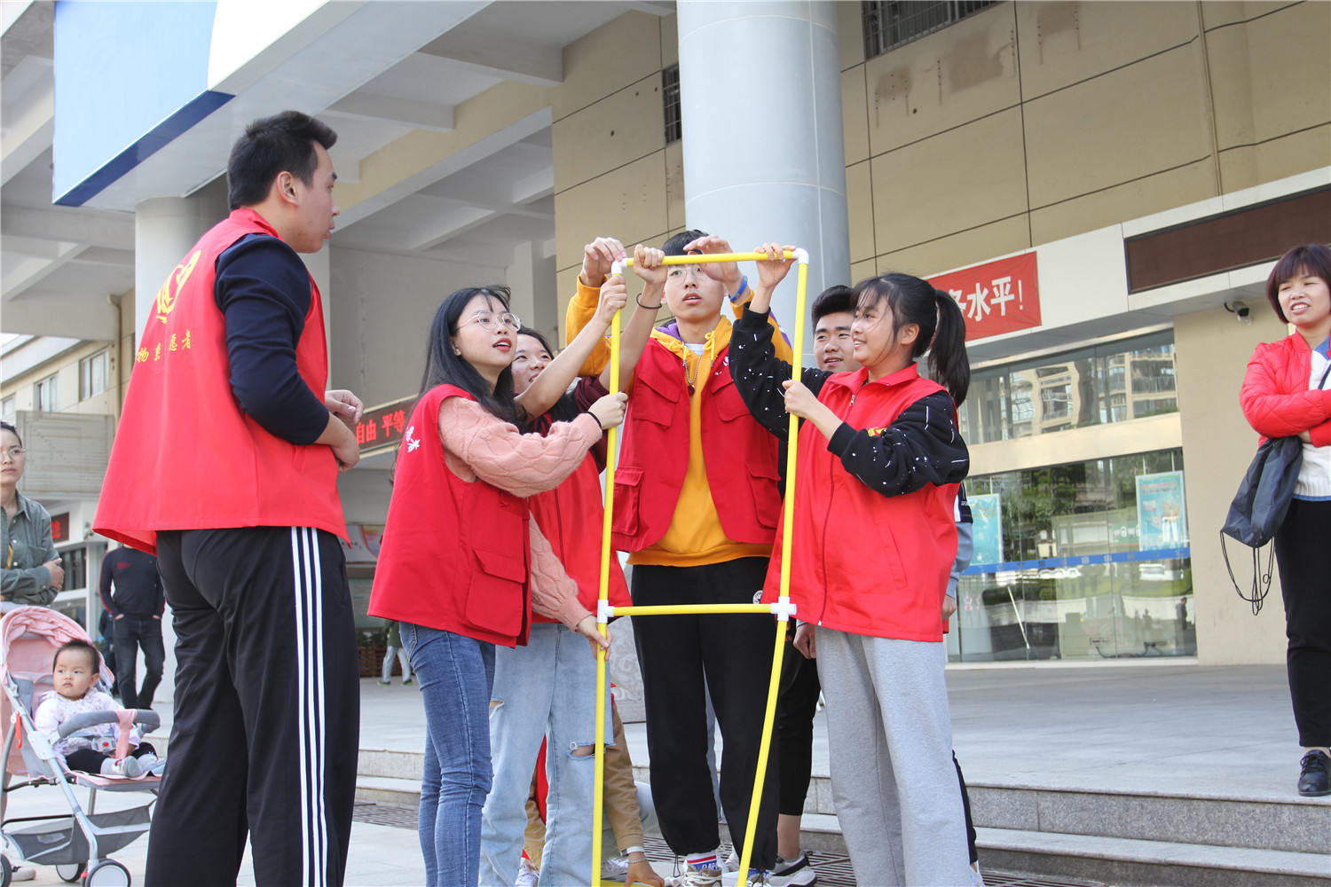 拓展活动持续一天,通过“组建团队”,分小组、选队长,进行队名、队旗、口号、队员展示等,确立了团队培训目标,形成团队成员的基本价值观;通过“我们都是一家人”、“呼吸的力量”、“穿越A4纸”、“齐眉棍”等拓展项目,志愿者们在比赛中,加快融入了集体的队伍,感受到了合作、沟通的志愿精神;并且提升了开拓思维、解决难题和集体、责任意识。最后大家都抒发了心得,进行了总结。大学生志愿者在素质拓展培训中,得到了团队配合、团队奉献、集体协作、执行力等训练。