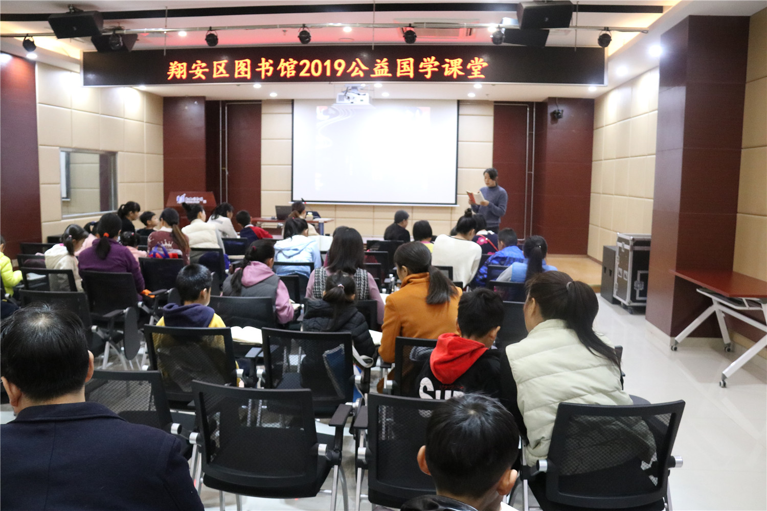 12月14日上午,翔安区图书馆举办了2019年公益国学课堂秋季第10期活动。老师分享了《国学与生活》的德能讲座,讲述国学名画,敦煌艺术与九色鹿故事,并指导在座亲子家庭的读者诵读《论语》、《千家诗》等国学经典。课堂上有分享、有讨论、有答惑,由浅入深,亲子共学,既诵读经典、学习圣贤的智慧,又在德能分享活动中帮助读者树立正确的知见。