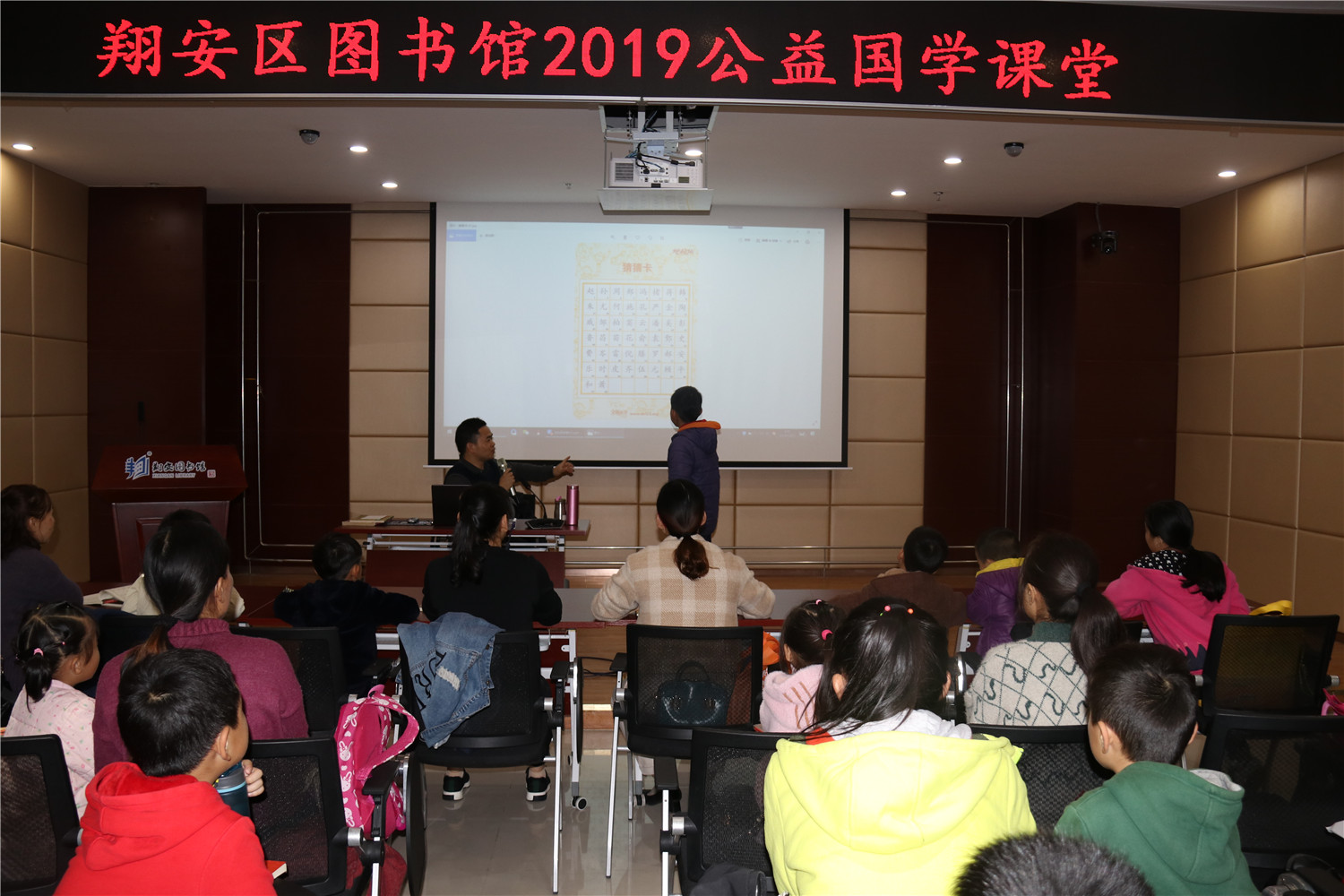 12月21日上午,翔安区图书馆举办了2019年公益国学课堂秋季第11期活动。本次活动由翔安区义雅书院院长力禾老师主持,他作了《字的童话》的德能讲座分享,通过讲述《字的童话》绘本,教小读者们在写作中灵活运用成语、歇后语、格言诗句,并指导在座亲子家庭的读者诵读《论语》、《千家诗》等国学经典。课堂上有分享、有讨论、有答惑,由浅入深,亲子共学,既诵读经典、学习圣贤的智慧,又在德能分享活动中帮助读者树立正确的知见。