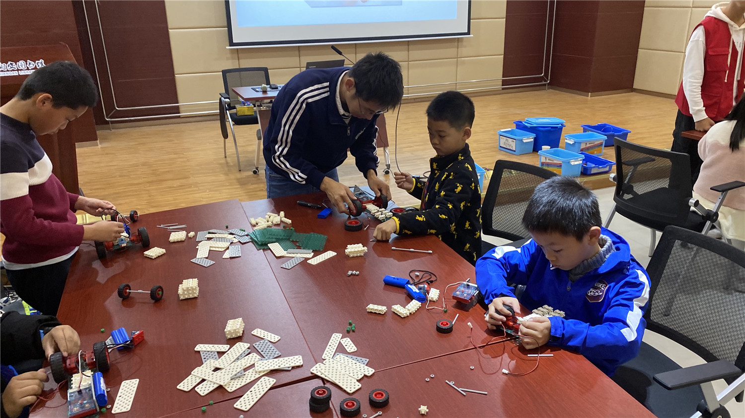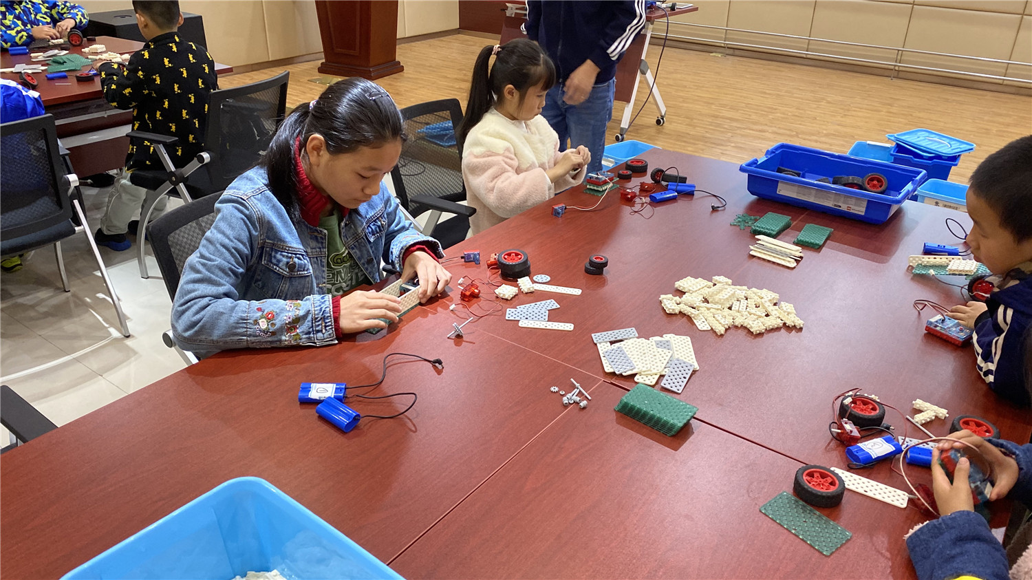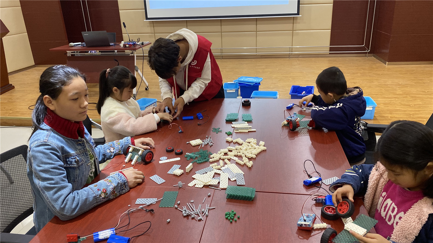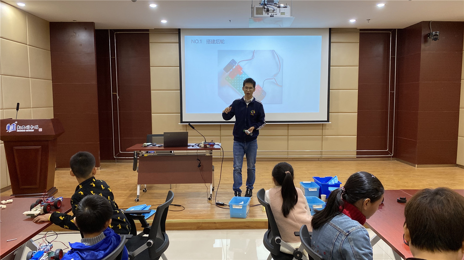 初级班为亲子活动,小读者们和家长在老师的带领下用乐高大颗粒拼搭出“麋鹿拉雪橇”模型;中级班的读者在老师的指导下,用乐高小颗粒拼搭出“平衡车”,并加入动力装置及图形编程。丰富多彩的体验形式,让读者们大开眼界,在探索、实践中游戏、学习,通过动手操作锻炼动手能力、解决问题能力、想象能力、逻辑思维能力,提升创造力。