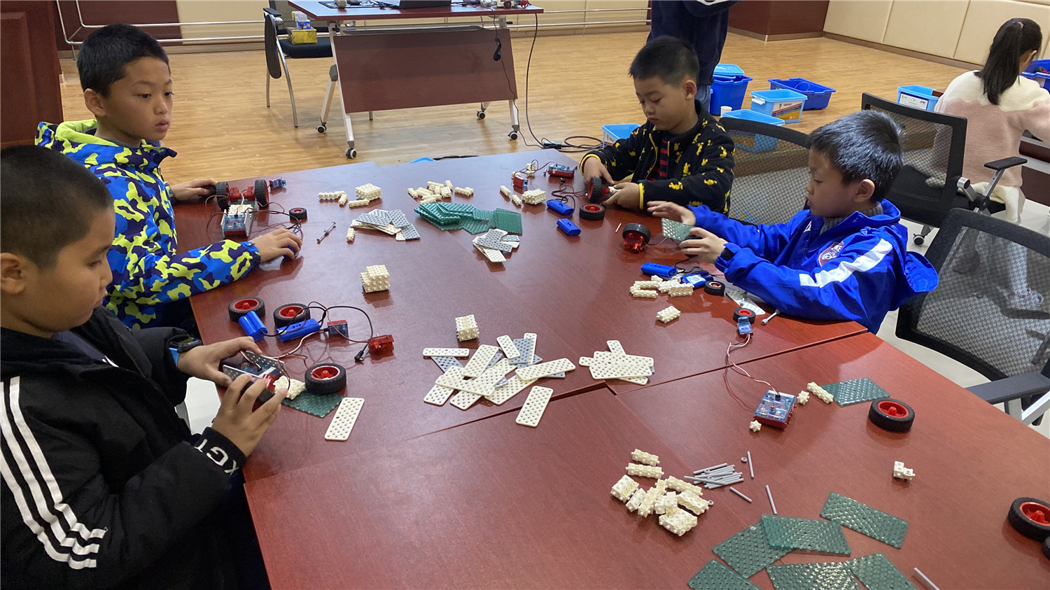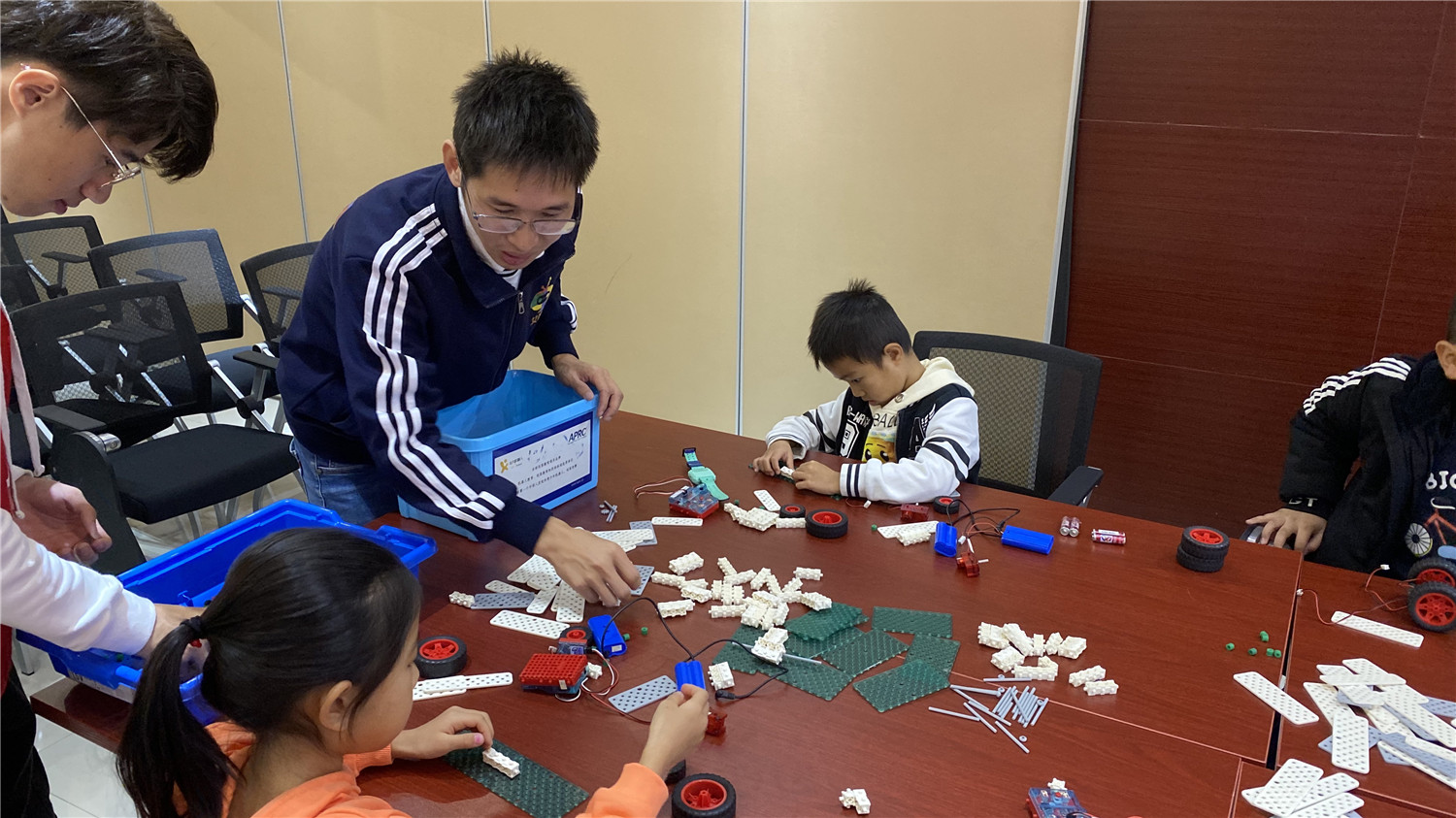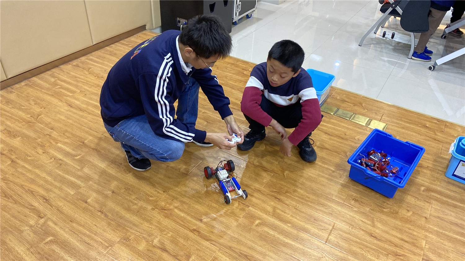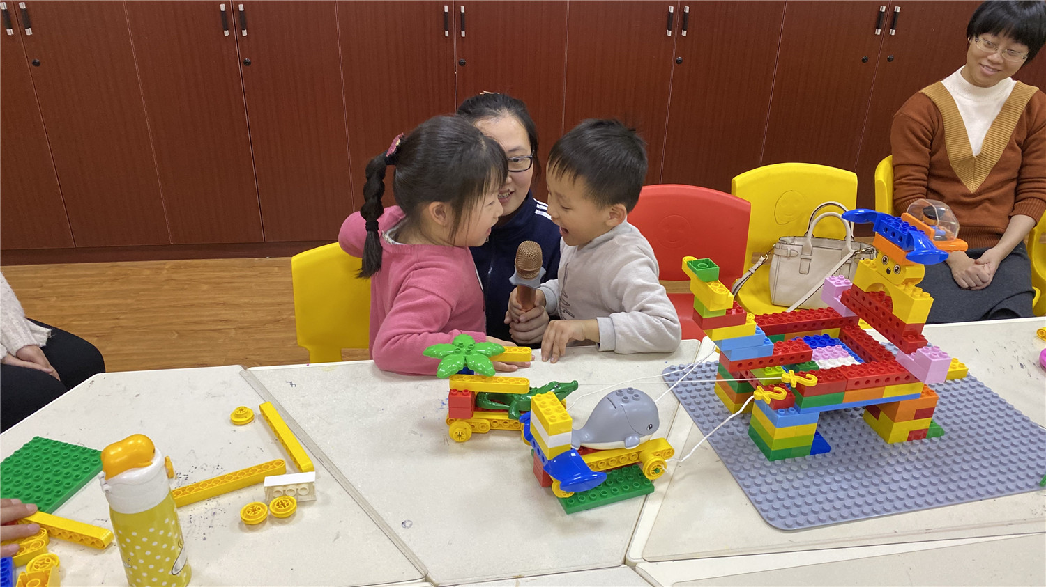 初级班为亲子活动,小读者们和家长在老师的带领下用乐高大颗粒拼搭出“麋鹿拉雪橇”模型;中级班的读者在老师的指导下,用乐高小颗粒拼搭出“平衡车”,并加入动力装置及图形编程。丰富多彩的体验形式,让读者们大开眼界,在探索、实践中游戏、学习,通过动手操作锻炼动手能力、解决问题能力、想象能力、逻辑思维能力,提升创造力。