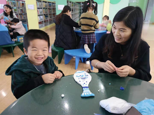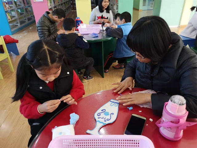 2019年12月28日上午,新圩分馆举办了趣味小学堂之“庆元旦—心灵手巧做青花”元旦亲子活动。青花瓷,是中国元素与时尚的代表,是最纯粹的中国传统文化,本次活动形式是用超轻彩泥为花瓶造型的木质模板装饰“青花”图案,活动的开展一是让小朋友了解了中国最纯粹的传统文化——青花;二是体验小朋友与父母在一起欢度节日的幸福和快乐;三是培养幼儿能勇敢的在集体面前展示和表现自己;四是训练幼儿的观察能力及动手的灵活性。