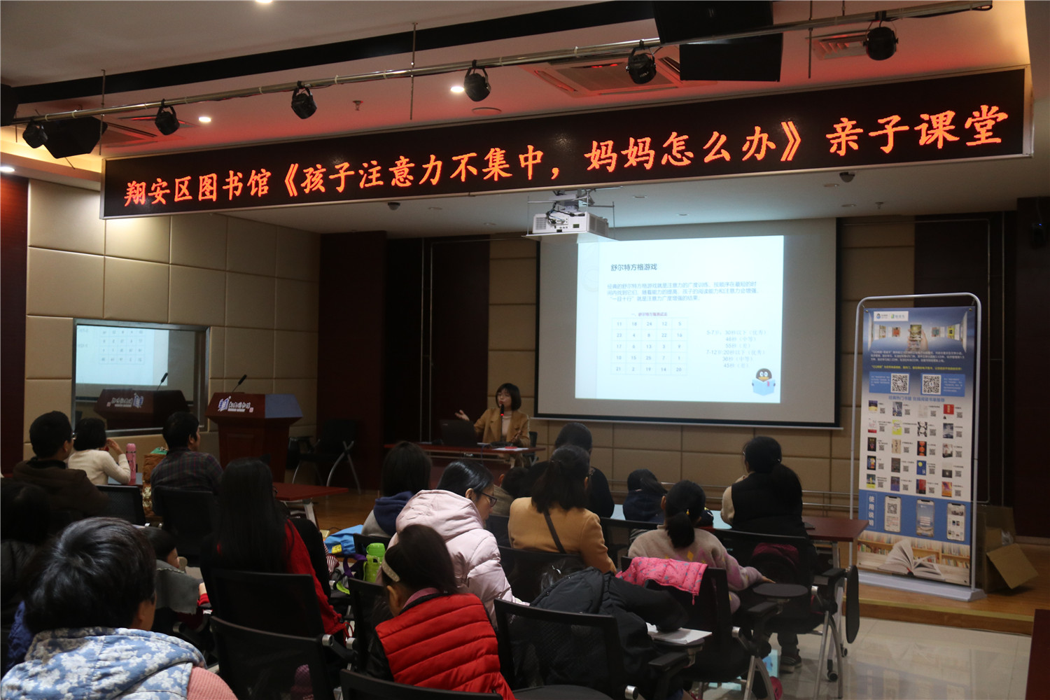 1月16日,翔安区图书馆举办亲子课堂活动,指导老师就家长所困扰的孩子专注力问题,针对4岁、5-6岁、7-8岁三个不同年龄层次的孩子,结合《孩子注意力不集中,妈妈怎么办?》这本书籍,从书中孩子注意力不集中的原因、利用孩子的兴趣提升注意力、对孩子进行注意力训练等3个方面进行授课讲解,并通过互动问答方式分发小礼品,让父母更好地去理解和训练孩子注意力问题。