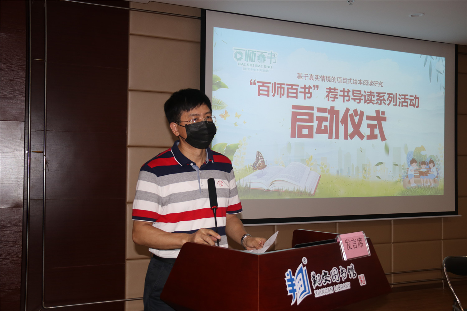 为更好地整合翔安区优质教育文化资源,翔安区图书馆、翔安区教师进修学校及相关幼儿园联合举办“百师百书”荐书导读系列活动,以翔安区实验幼儿园为实践基地园,开展“超阅21天”绘本阅读打卡、绘本剧表演、绘本阅读专题讲座等配套活动。5月31日上午,在区图书馆报告厅举行活动启动仪式,翔安区教师进修学校书记、校长王永富,翔安区图书馆馆长张胜峰,翔安区实验幼儿园书记、园长郑美芬,翔安区教师进修学校幼教教研员郭阿苏,专题讲座主讲嘉宾戴慧萍老师及郭阿苏名师工作室核心成员、翔安区实验幼儿园教师、翔安区图书馆相关工作人员出席了启动仪式。