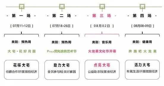这场历时近一个半月的文化旅游盛宴,把一颗颗色泽艳丽的火龙果玩出了全新的花样,不仅有星空音乐会、浪漫烟花秀、拉杆箱旅行市集、荧光涂鸦展、网红直播培训、火龙果大比拼,也可以拍照打卡、田间夜跑、亲子采摘、邂逅交友、住轻奢民宿……市民和游客不妨到大宅社区,与火龙果来一次亲密接触,体验全新的田园生活,开启厦门版“向往的生活”。