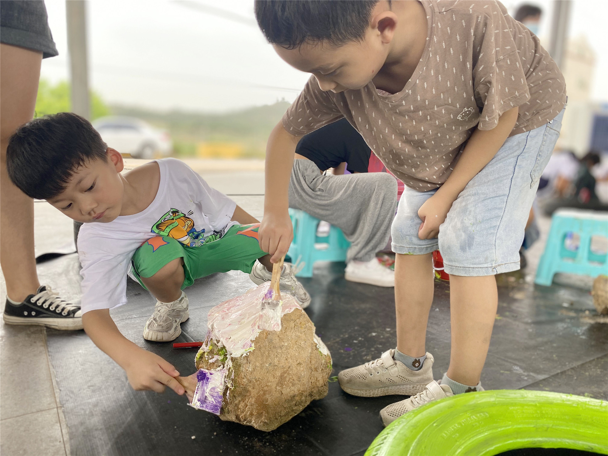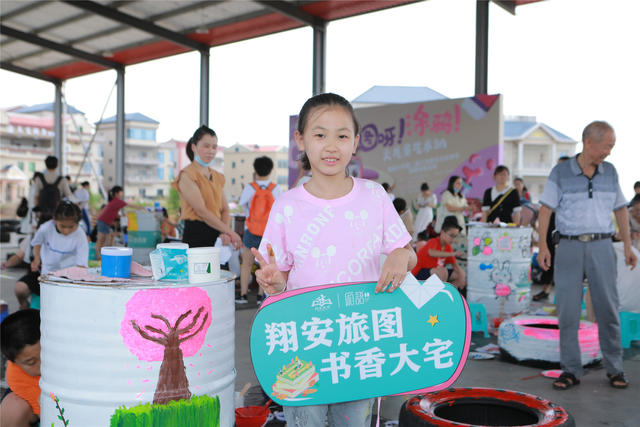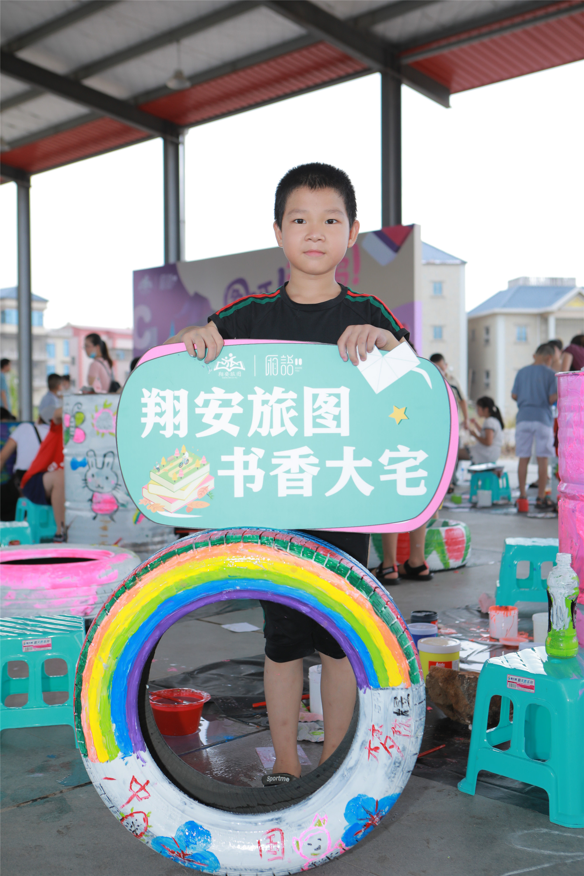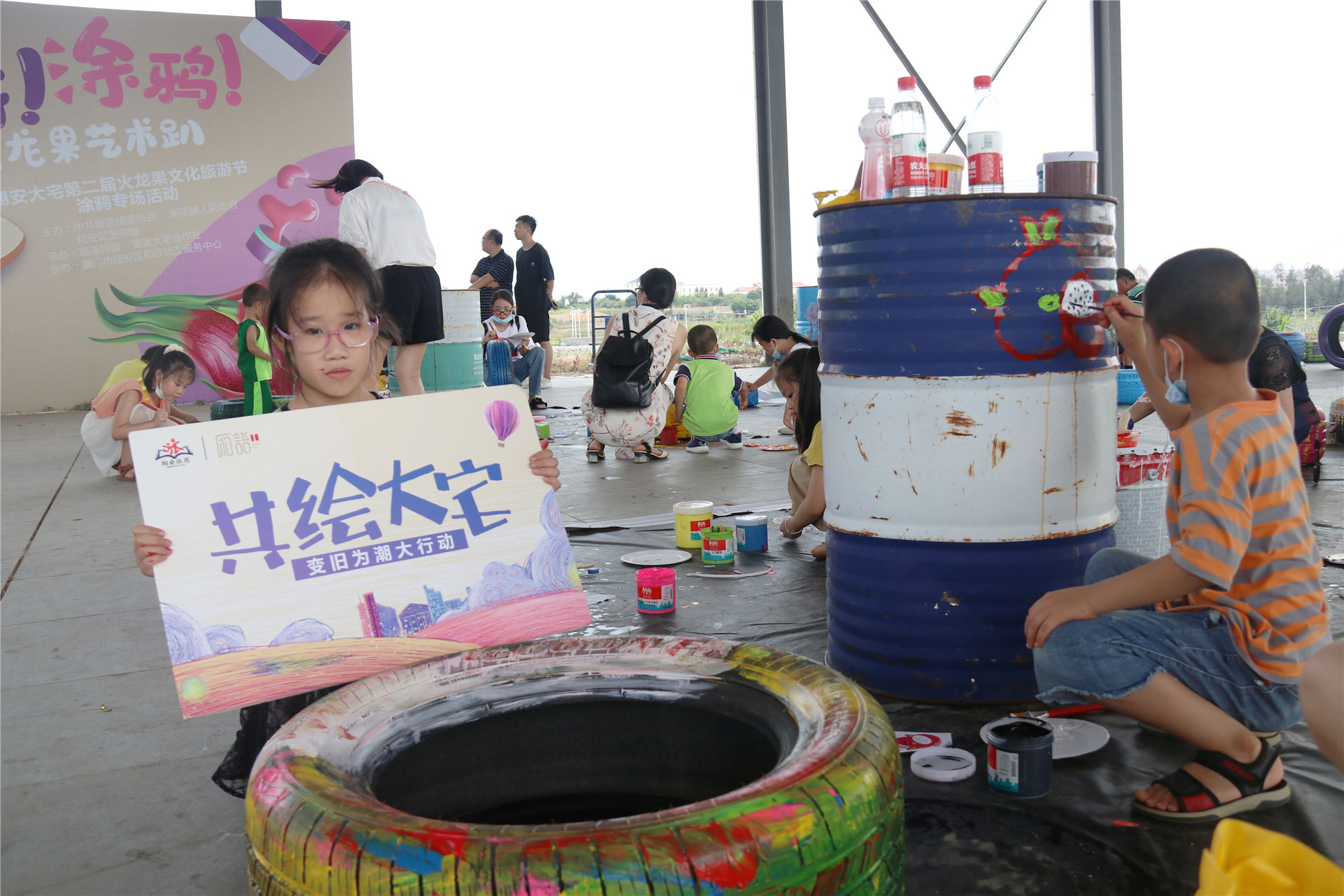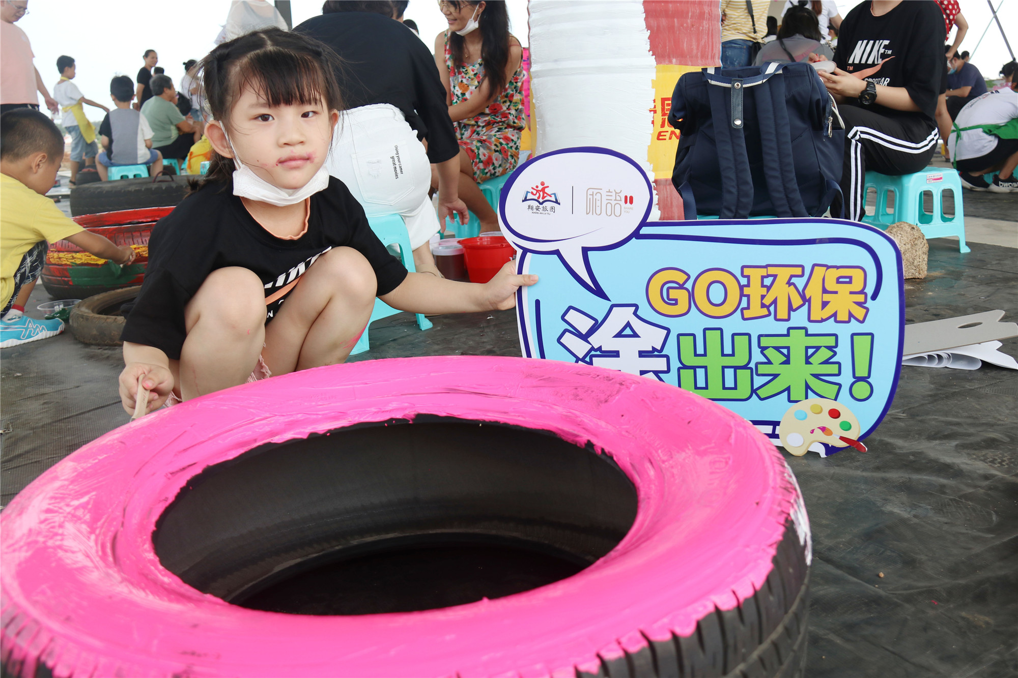 7月25日、26日下午,由翔安区图书馆组织的共120组亲子家庭在涂鸦师的指导下一起动手在废旧轮胎、油漆桶、石头等旧物上进行荧光创意涂鸦彩绘。
