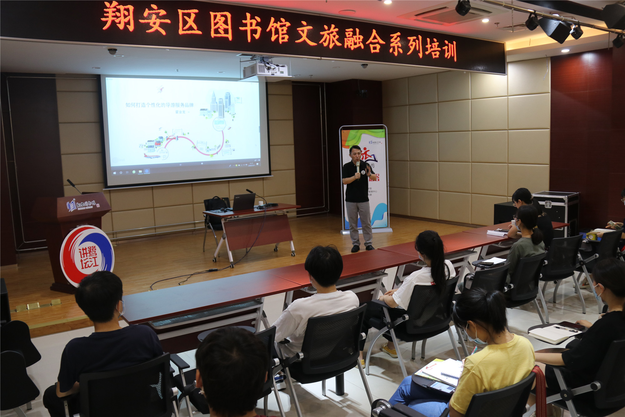 霍金龙通过丰富的导游实践经验和案例让馆员们了解导游的服务技巧等内容,帮助他们在今后的“翔安旅图”旅游推广中能为读者提供更好的旅游体验。