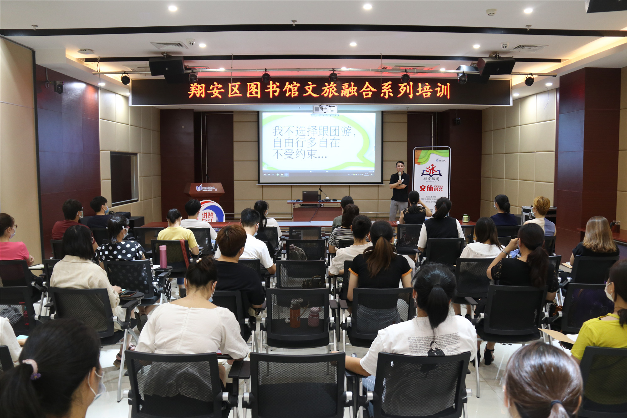 7月31日,翔安区图书馆召集总馆、分馆、邻里书屋全体工作人员在二楼报告厅参加“文旅融合”第三期培训会。
