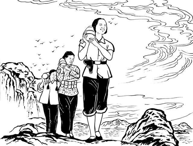 15. 一位部队首长看到女民兵挑沙登山艰辛豪迈的情景,连连赞叹:“英雄的民兵!英雄的路啊!” 后来,上级有关部门在那条陡峭的山道上,立了一块石碑,上面镌刻着一颗五角星和“英雄路”三个大红字,仿佛一丛永远绽放在山巅的鲜花,给后人留下一个永不褪变的红色记忆。