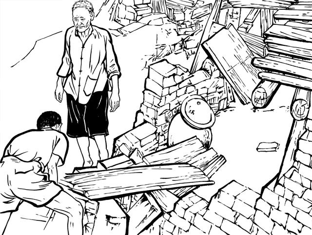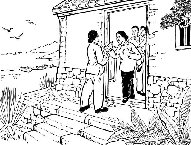 21. 邱永亮给村民们发完救济粮、救济款,亲自把自家的救济粮送到困难户董子家。自家人靠着一丘地瓜藤苗的“藤尾仔”度过饥荒。洪顺利也让出救济粮,哄老爸捕鱼填饱肚子。洪秀枞也是两手空空回到家里,靠地瓜、海菜充饥。小嶝岛最早的三名党员,以实际行动感召群众,成了小嶝人民的主心骨!