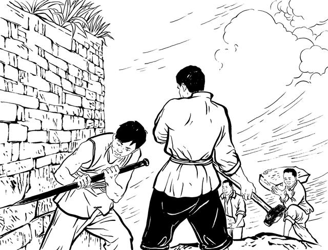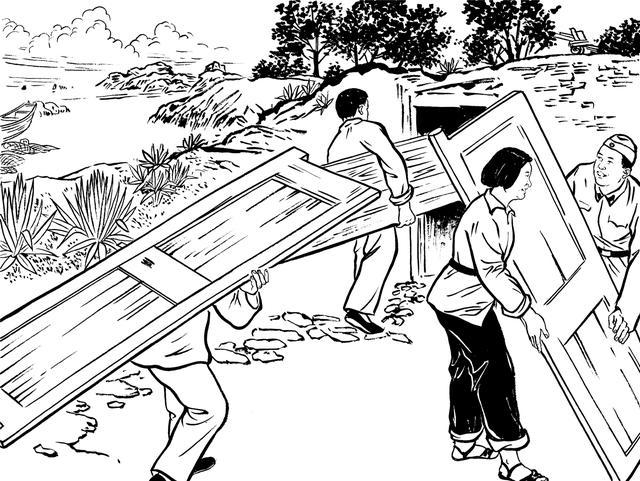 11. 洪秀枞带头把自家的门板以及阁楼的楼板全部拆了下来送到阵地上。村干部带头,团员们带头,民兵们带头,岛上的群众纷纷把家中的门板和阁楼的楼板全部都捐献出来。有位老华侨,把准备盖房子的木料、砖和石头全部贡献出来。