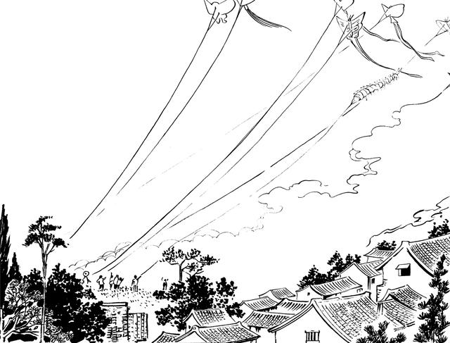 34. 鹰头风筝顺风顺水飘到金门上空时,恰好点燃的香烧破纱巾袋的封口,宣传品在高空便像“天女散花”似的撒落在金门岛上。成千上万只鹰头风筝像大雁南飞似地飞向金门岛,形成了战争史上的奇观。这是一场没有硝烟的攻心战。
