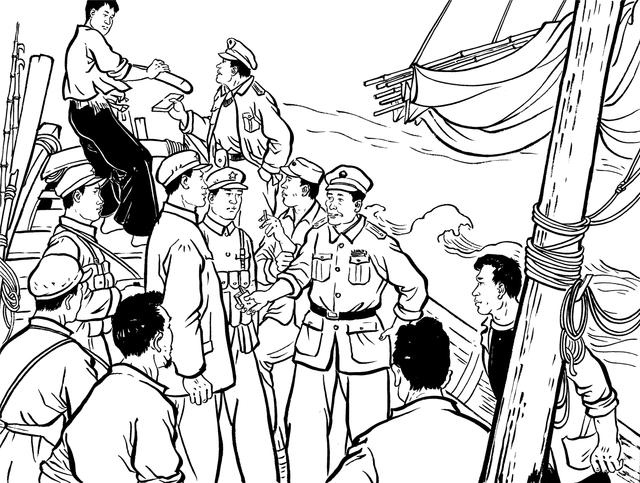 38. 1955年的元宵节,洪秀枞和洪顺利带领24名民兵,在部队一个排兵力的掩护下,把写着“一定要解放台湾、蒋军官兵放下武器一律宽待”的两个大标语牌置放到离敌岛只有500米的海面。第二天,敌人一发现,马上开炮轰击,连打100多发炮弹,才把标语牌上“蒋”字的草字头打掉。