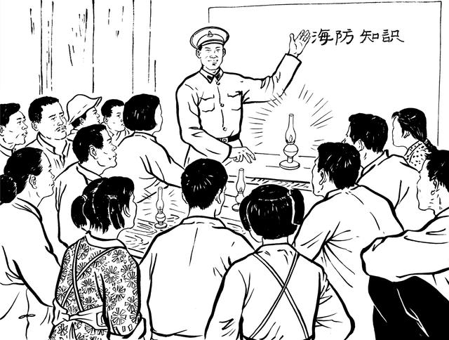 45. 俗话说:“魔高一尺,道高一丈”。为了提高反敌小股武装袭扰的信心和作战能力,1954年春季的一天晚上,驻岛部队营教导员张福泉应邀给小嶝的民兵上课,传授对敌斗争经验。