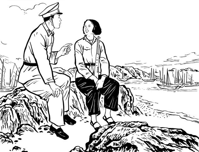 47. 在小嶝岛上,两位年轻人相知相恋。1954年12月,张福泉所在的营奉命调离小嶝岛。1955年6月,洪秀枞前往连云港与张福泉结婚。台海对峙,也成就了一段“女将爱虎将,英雄恋美人”的百年爱情佳话。