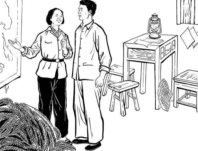 46. 张福泉身材魁梧,神采飞扬、滔滔不绝地讲述部队反小股武装袭扰的神奇故事,让洪秀枞油然而生敬意。在共同的战斗中,年轻的女副乡长、 18岁的海岛姑娘——洪秀枞,飒爽英姿,无私无畏,就像一朵海岛英雄花,绽放在他的心田里。