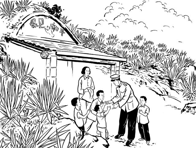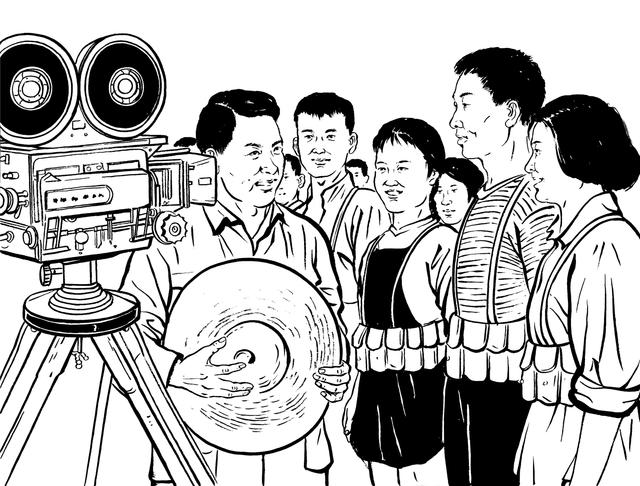 52. 1955年4月,八一电影制片厂的摄制组登上小嶝岛拍摄《海防民兵》电影纪录片。洪秀枞、洪顺利带领民兵为摄制组站岗、放哨,保护他们的安全,配合完成拍摄工作任务。