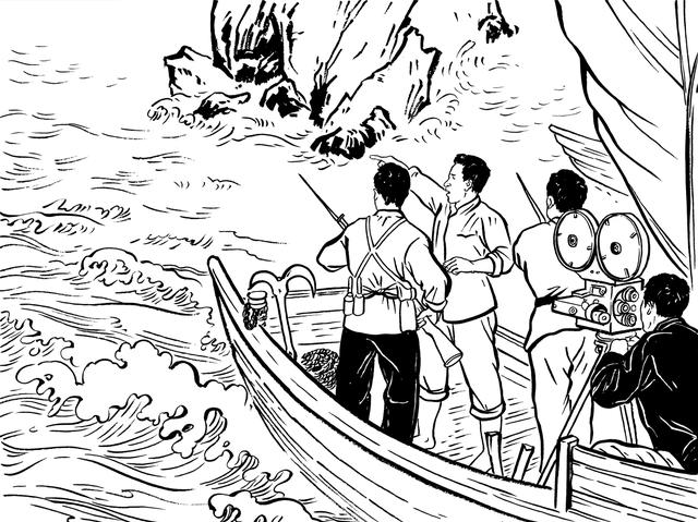 53. 六月的一天,洪顺利告诉张加毅导演:发现海上有三个水鬼向小嶝游过来,准备前去抓捕,想不想冒险去拍摄?张加毅作为一名战地记者,又是从中国革命圣地延安走出来的老八路,毅然率领摄影师跟着洪顺利上船出海,埋伏在一块大礁石后面。