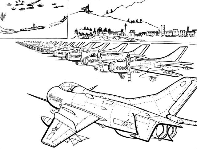 58. 解放军空军5个师500架飞机、海军92艘各类舰艇也秘密进入福建连城、东山、厦门,广东汕头、三都澳,浙江温州的机场和港口。经过一个多月的精心准备,1958年8月,解放军海陆空三军全部进入福建前线“一线”阵地,万事俱备。