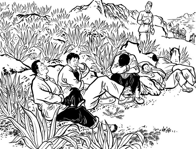 69. 民兵们运完物资后,每晚还要和炮兵战士们一起修阵地、建碉堡。从8月27日到9月15日,他们夜以继日地奋战,几乎没有时间睡觉,每个人都极度疲惫,累得腰酸腿软,双眼睁不开。实在扛不住,偶尔躺在路旁、草丛里打个盹。每个人拼着命干,毫无怨言,决不叫苦叫累。