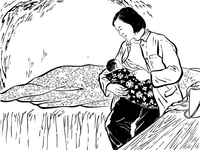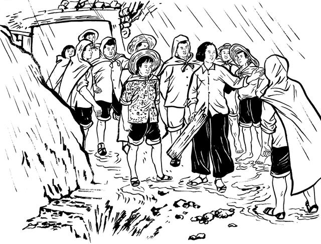 73. 洪秀枞听到呼声,立刻将孩子往床上一放,说:“儿子,我顾不上你了。”她来不及披上雨衣,冲出洞外,叫来人快去集合民兵,第一个冲到出事现场。