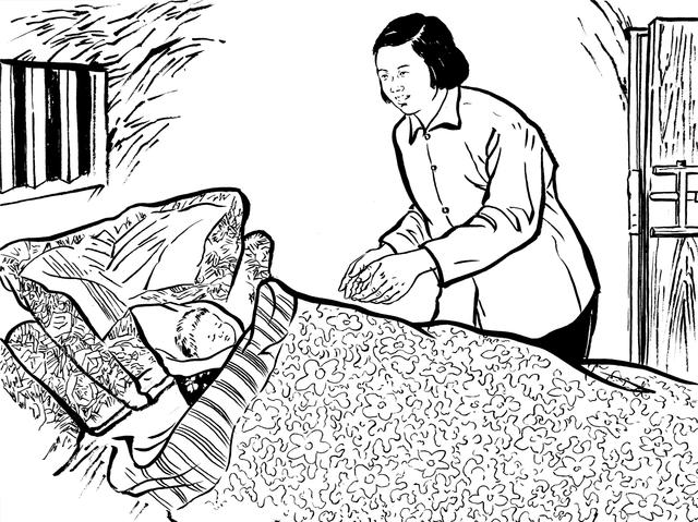 22. 守岛部队除了日夜站岗巡逻外,还要掘战壕、建碉堡、挖地道,又忙又累。洪秀枞把阿婆、阿婶们组织起来,为战士们洗衣服,洗被单。那时候缺少肥皂,都用“茶饼”洗衣服。茶饼直径一尺多,厚度一寸左右。洗衣时,先掰下一块茶饼,用水泡开,然后用茶饼水来洗衣,得洗好几遍才能把衣服洗干净。