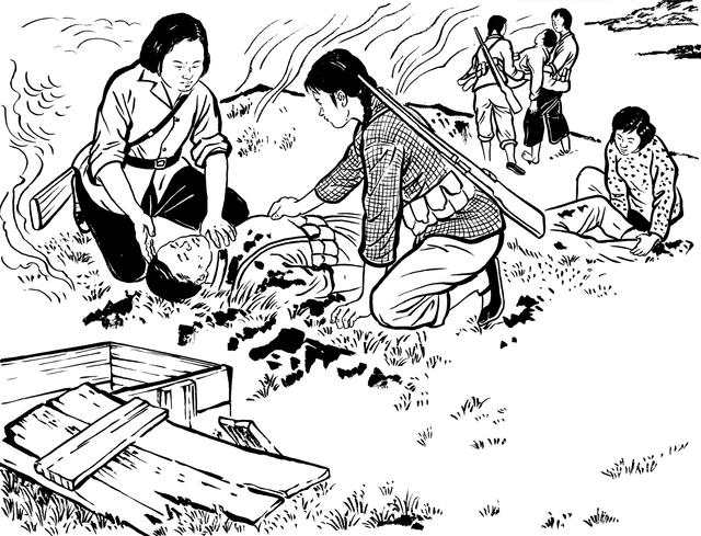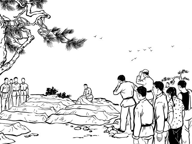 88. 民兵蔡闷到供销社买布,给烈士们做寿衣,张稳顺到莲河买棺材让烈士们入殓。这一切秘密做完准备下葬时,才派人请来牺牲民兵的家属,不忍心让他们看到亲人的惨状。随后开个简短的追悼会,匆匆给予下葬。