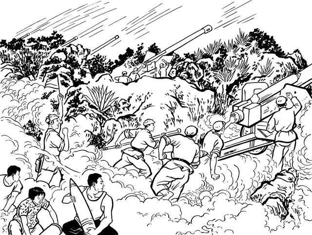 91. 解放军35个炮兵营240余门火炮齐鸣,但只打金门滩头、无人区和无工事的山头。这两天,小嶝岛共有40多名民兵参加打炮,小岛民兵又经历了一次新的炮战洗礼。
