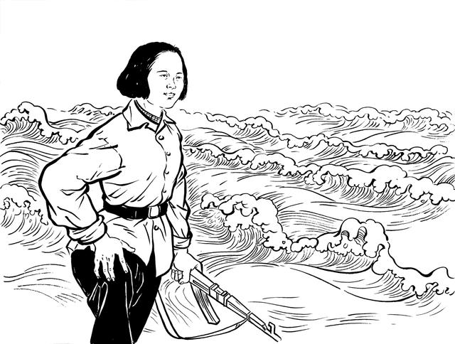 3. 短发齐耳,纤腰紧束武装带,腰间斜插小手枪,裤脚挽得高高的,肩膀上扛着沉甸甸的炮弹,俊俏的脸庞荡漾着灿烂的笑容……少女的柔媚与刚健集于一身,飒爽英姿,青春勃发。她就是小嶝岛英雄民兵群体中闪亮的代表——洪秀枞。