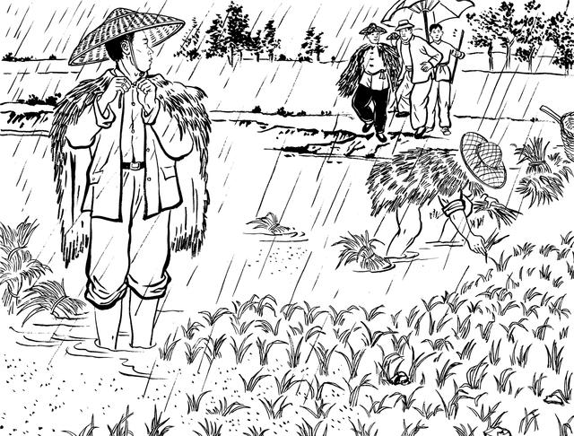 28. 当天下午,天空阴沉、电闪雷鸣,李松林头戴斗笠,身披蓑衣,往马巷方向赶去。远处正好走来一帮地痞,他急中生智,走入身边的水田,帮一家正在插秧的农民劳作,地痞们到了田埂边,看他满脸满身泥巴,盘问几句,便离开了。