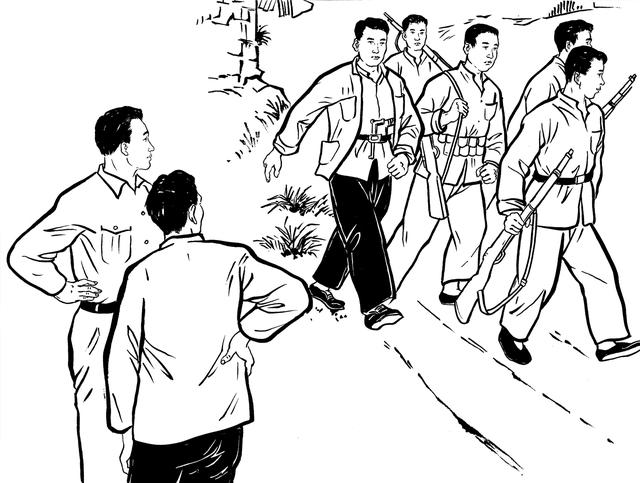 11. 梅花岭山高林密,常见老虎出没。大家在山下吃过午餐,待卖炭回梅花岭的大拨山民到来时,才同他们一起翻山越岭。一路上,彭金励总是津津有味地讲述“厦门劫狱”“攻打马巷税契局”“珩厝抢盐” “后村抢布” “新圩抢米”等革命故事。虽然路途遥远艰辛困苦,但大家也不觉得累。