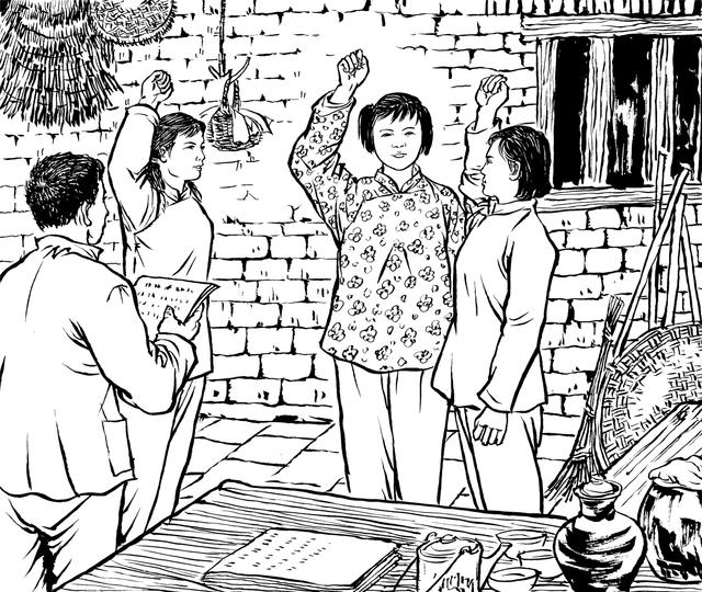 13. “野火烧不尽,春风吹又生。”就在这一年,易秀英的四哥易苏参加了共青团组织,易秀英、易秧、易冇三个女青年也参加了妇女会。不久,易苏介绍她们加入共青团,成立一个团小组,由刚满十四周岁的易秀英担任组长。