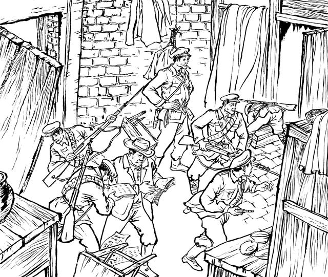 77. 又是一声枪响,彭畔来不及多想,不顾一切跳入烂泥洞里。洞里流出黄铁锈一样的泥水,水面上蠕动着一条条墨绿色的软绵绵的蚂蟥。他浑身起了一阵鸡皮疙瘩。保命要紧,哪里顾得上那么多呢!