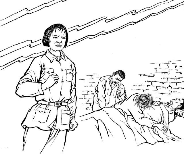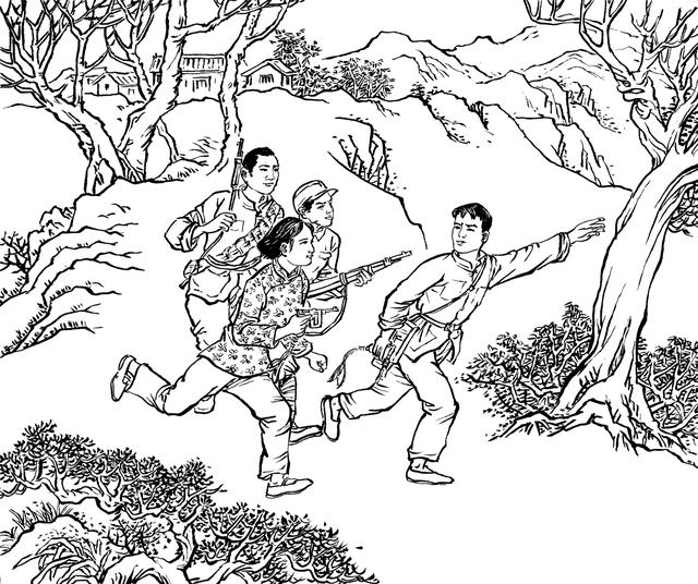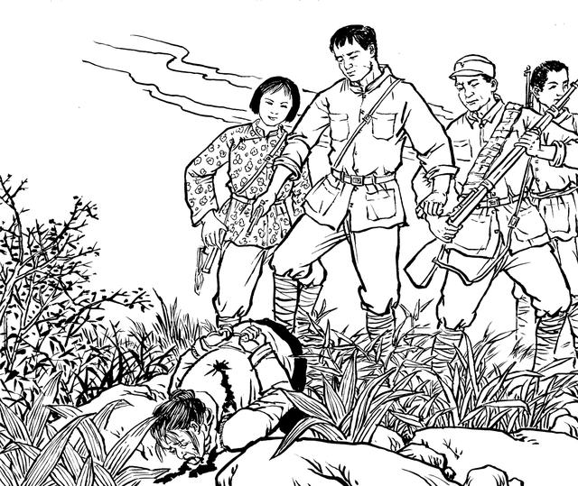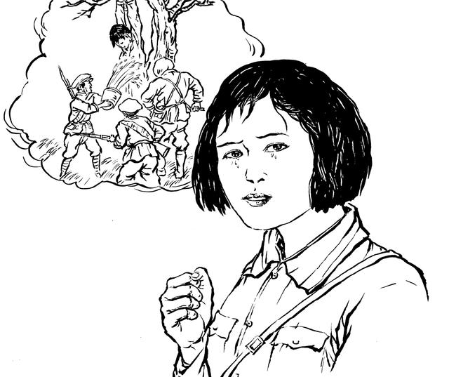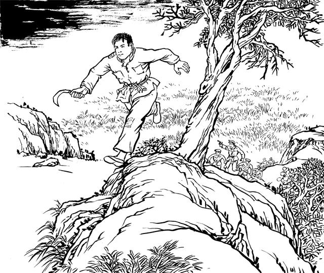 54. 丧心病狂的敌人一一敲断易苏的腿骨,想逼迫隐蔽在岩山上的易秀英下山。她眼睁睁地望见敌人的兽行,望见敌人将骨肉兄长折磨至生命的最后一刻,心如刀绞,泪水滂沱,胸中燃起熊熊怒火。