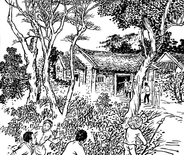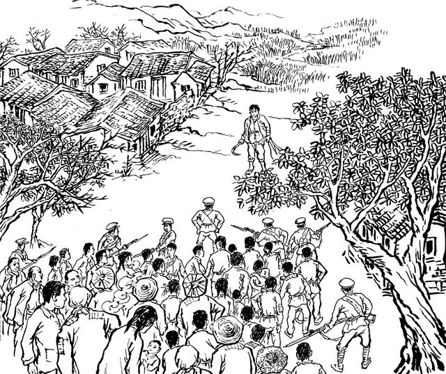55. 易秀英的二哥易沛为了逃脱敌人的迫害,深夜离开贞洋,前往游击区寻找妹妹。因为游击队形踪隐秘,没找到,在途中被镇府乡的黄广师民团抓去。民团里有人认出易沛是贞洋人,又残忍地将他活活打死。