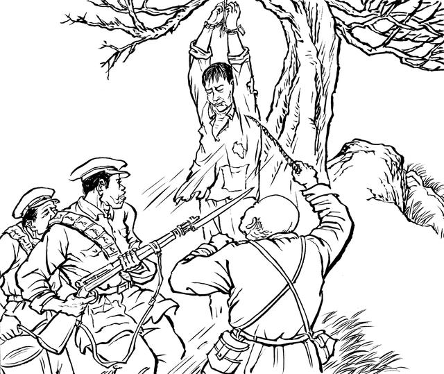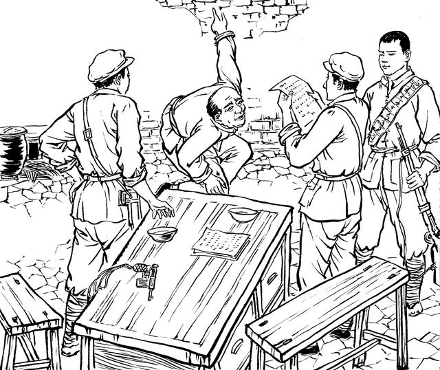 53. 暴跳如雷的敌人将易苏五花大绑,吊在岩洋路旁的一棵大树上,鞭抽、棍打、灌入养猪的泔水。易苏一次次地昏厥过去,又被敌人一次次地泼冷水弄醒,但他依然守口如瓶。