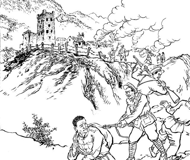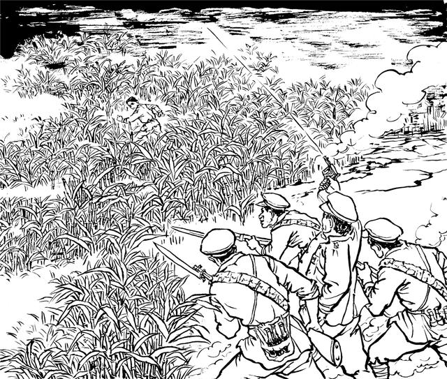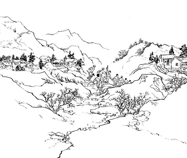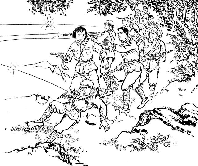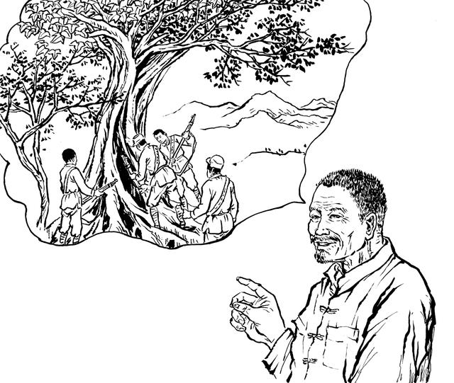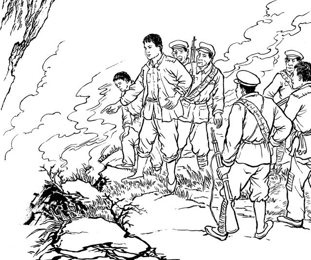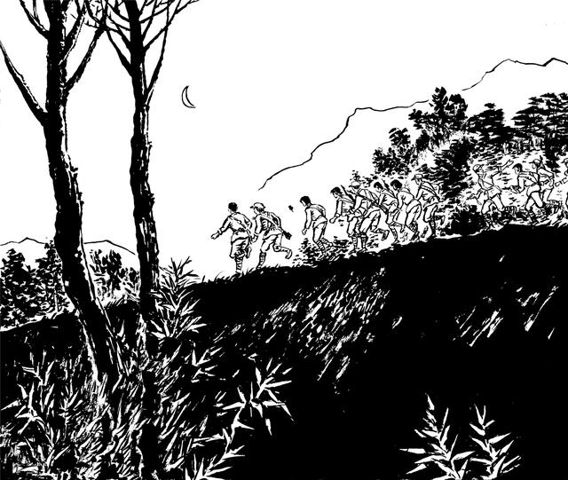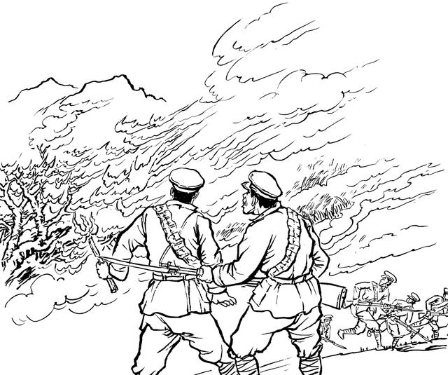 81. “共匪”活不见人,死不见尸,国民党兵奔波老半天,哪能灰溜溜地回去呢?他们只好放火烧山,望见满山遍野的大火呼呼呼地烧着,才骂骂咧咧地回去。